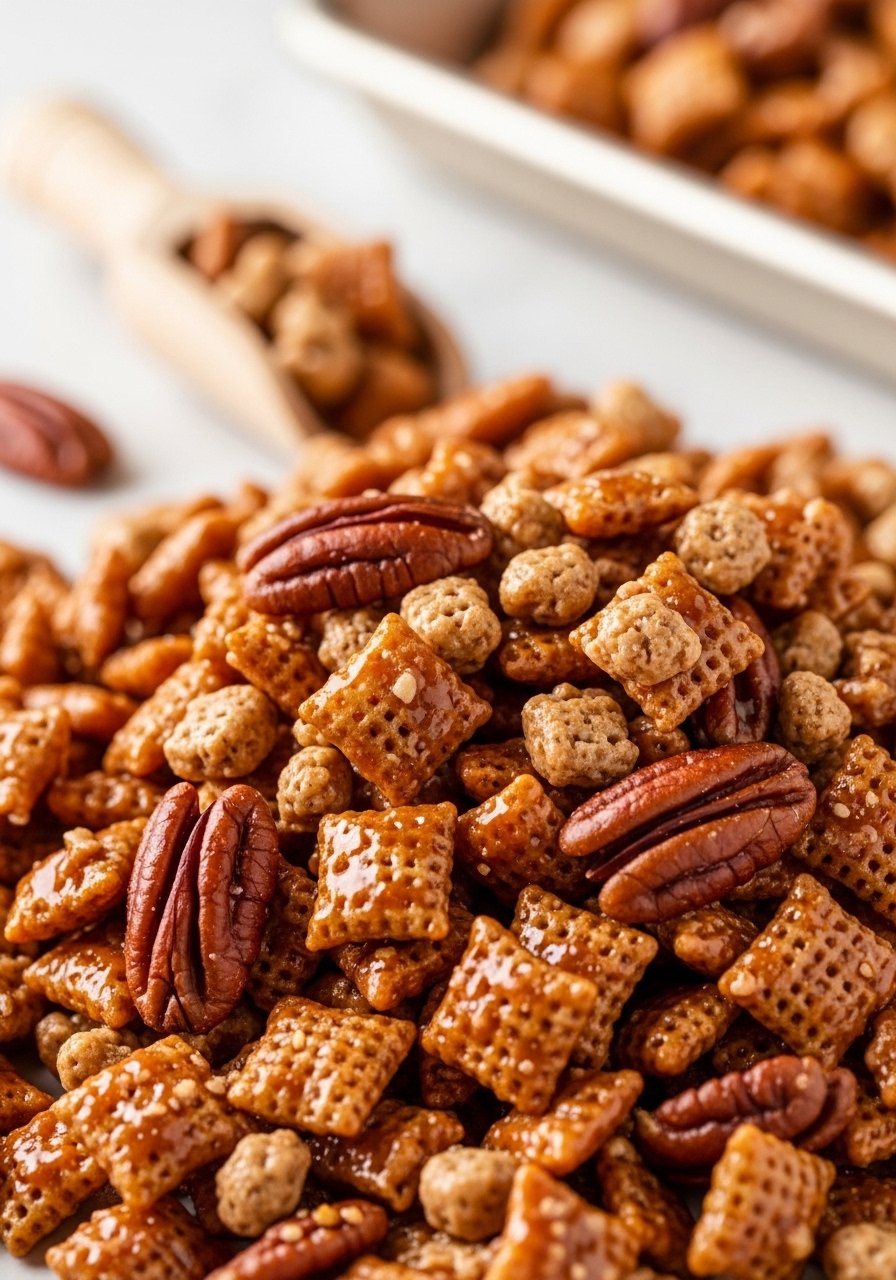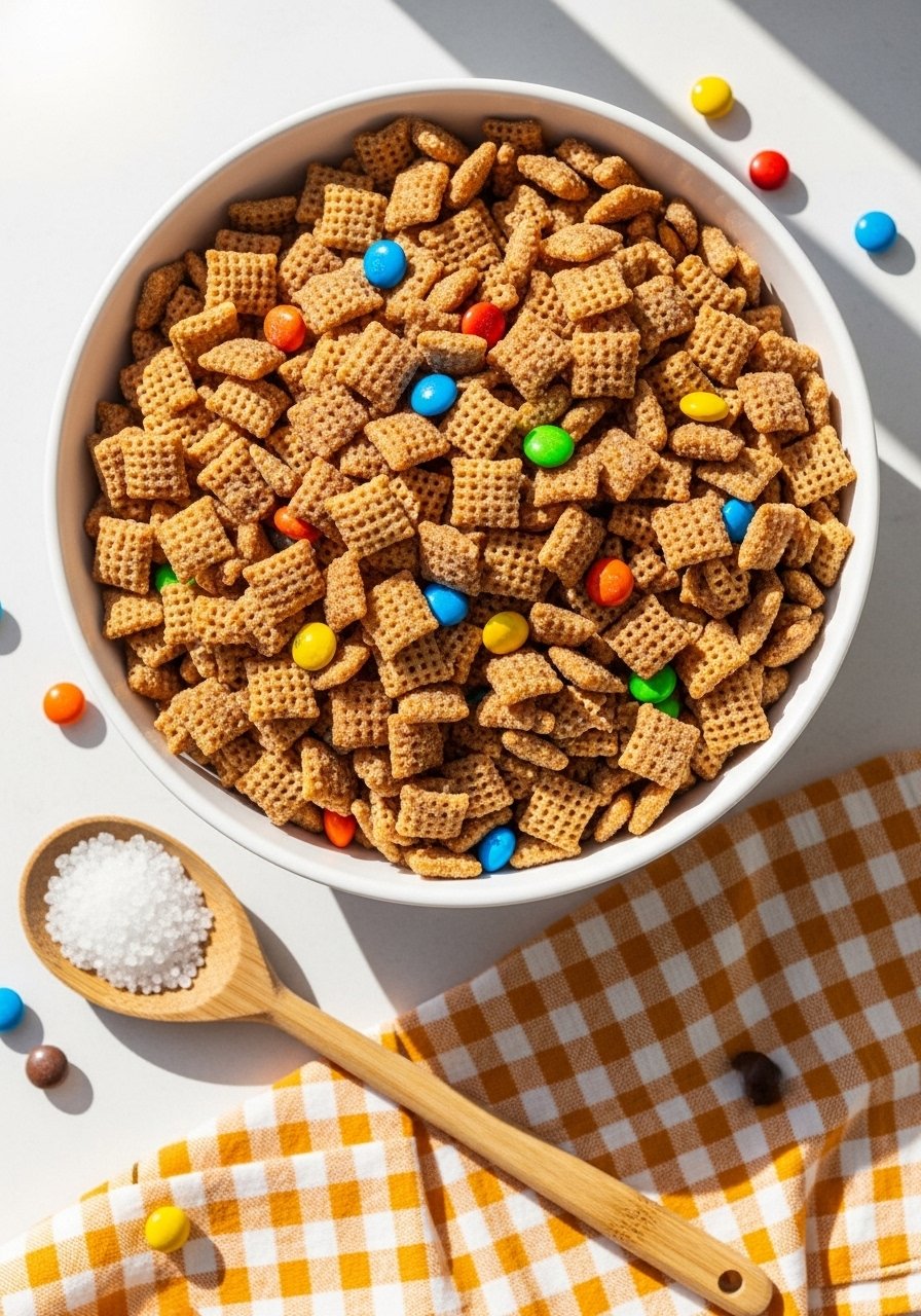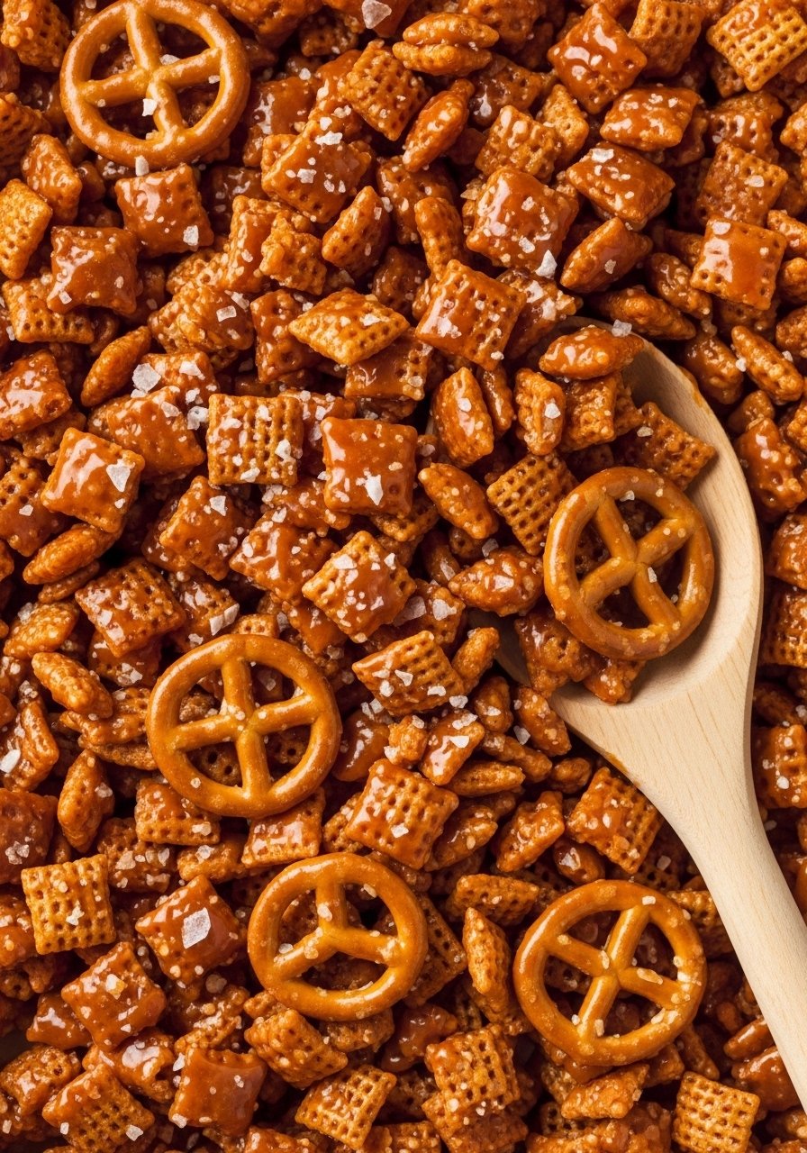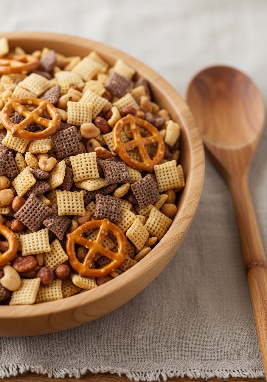This is the Chex mix everyone expects: buttery, savory, and salty with that toasty crunch. It’s inexpensive to make and perfect for feeding a crowd at potlucks. You’ll recognize the classic Worcestershire-garlic profile, with a crisp texture from toasted mixed cereals and pretzels. People who love savory snacks and pub-style flavors will reach for seconds.