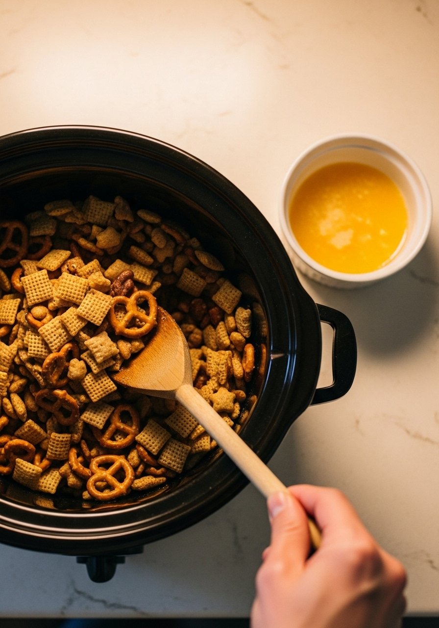 23. Slow Cooker Sweet & Spicy Budget Chex Mix (Hands-Off Crowd Feeder)