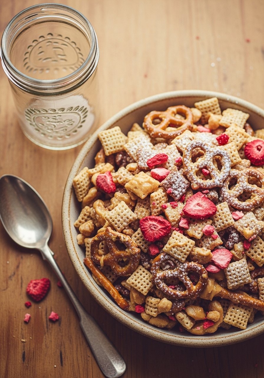 24. Peanut Butter & Jelly Budget Chex Mix (Nostalgic Sweet)