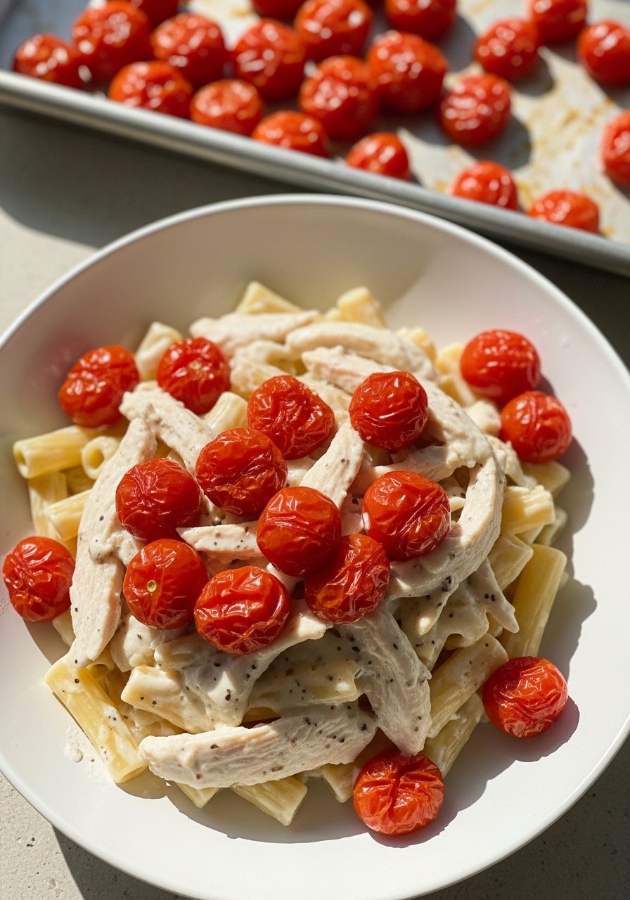 23. Budget Chicken Alfredo with Roasted Cherry Tomatoes