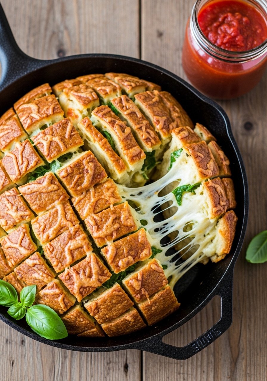 This pull-apart loaf looks fancy but uses one cheap loaf and shredded cheese. It’s gooey, savory, and perfect for sharing at parties. The slices get buttery and crisp on the outside while melty inside—kids and adults love tearing it apart. I bake this in my cast iron skillet for even browning.
