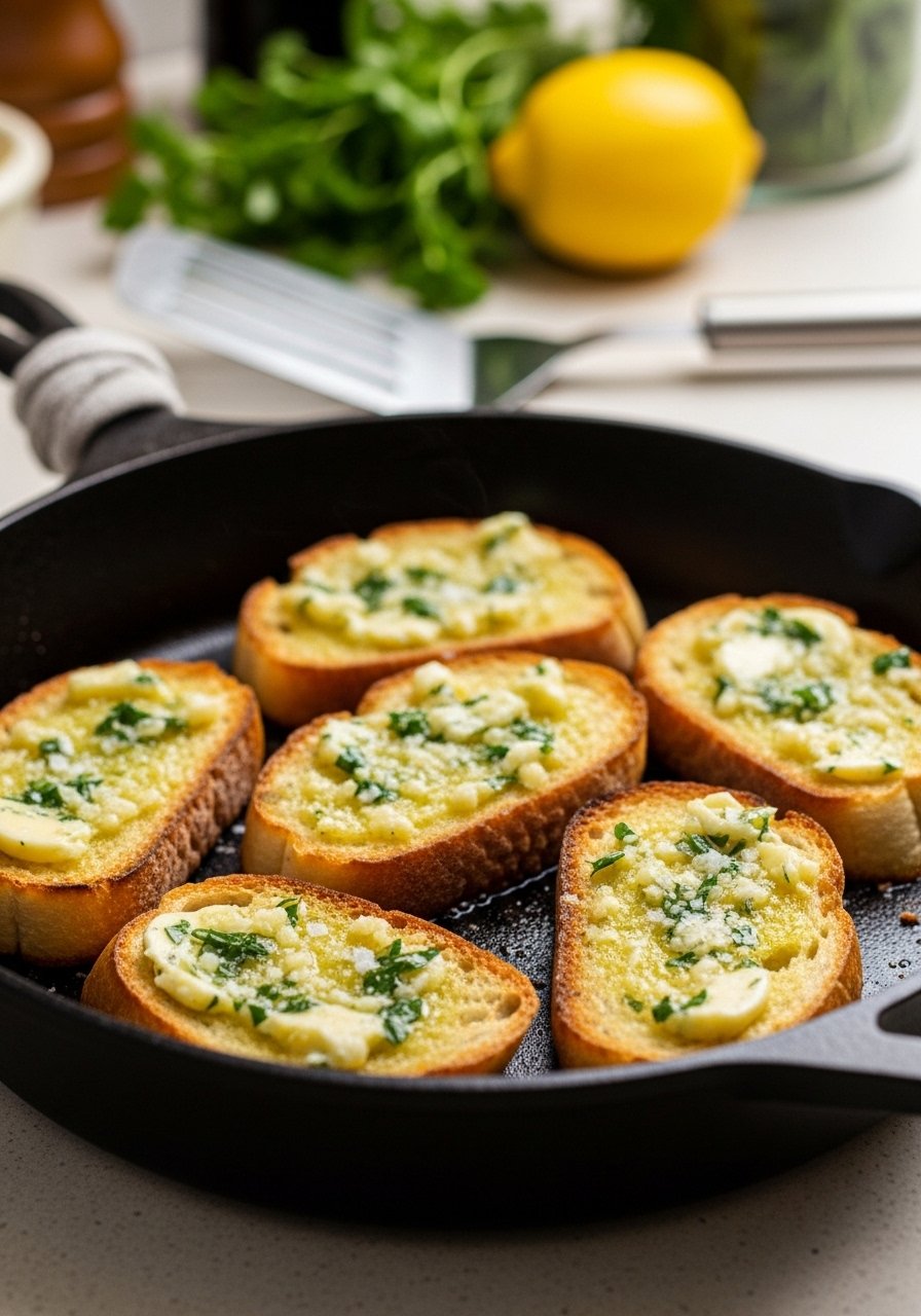No oven? No problem. These skillet garlic toasts get crisp, buttery edges in minutes and are perfect for small batches. The stovetop gives a crunchy exterior and soft interior. I use my cast iron skillet for best browning.