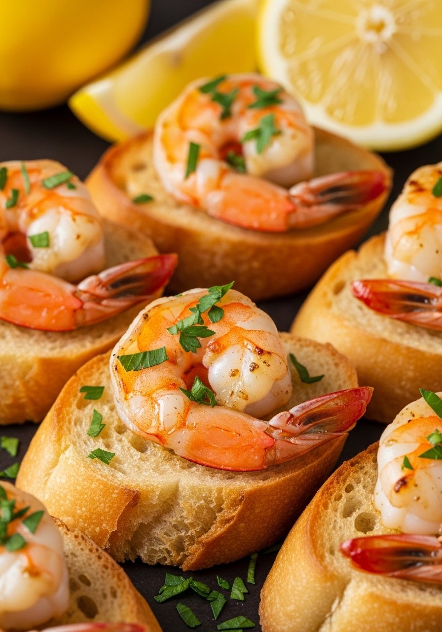 - Spoon shrimp onto toasted baguette slices and serve immediately.