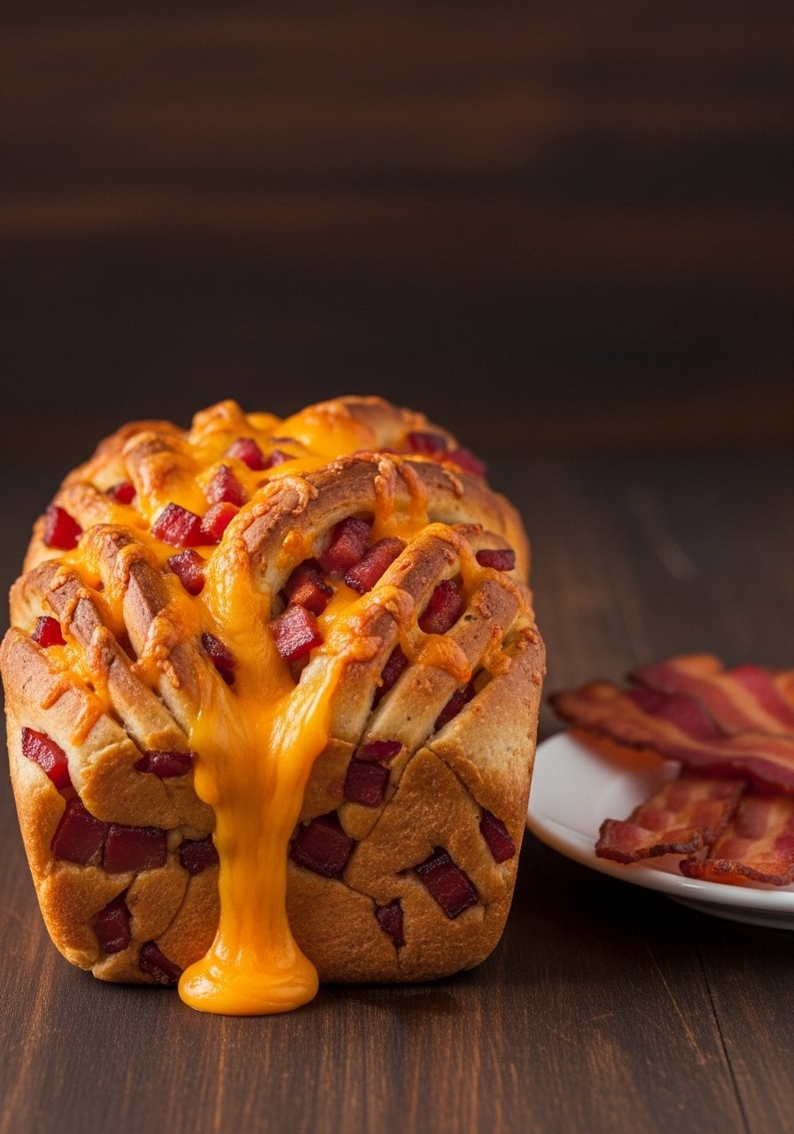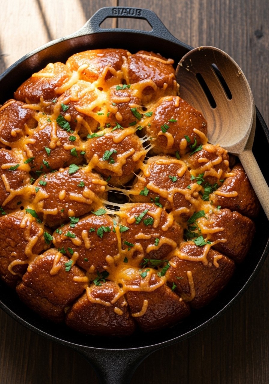 Soft dough balls brushed with garlicky butter and loaded with melting cheese—this monkey bread is playful and irresistible. The texture is pillowy inside with crisp, buttery exteriors studded with cheese. Kids and party crowds love tearing off pieces.