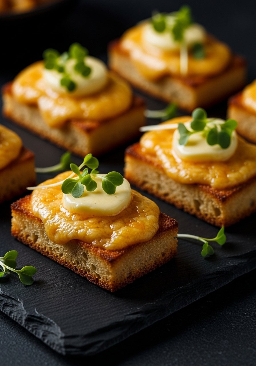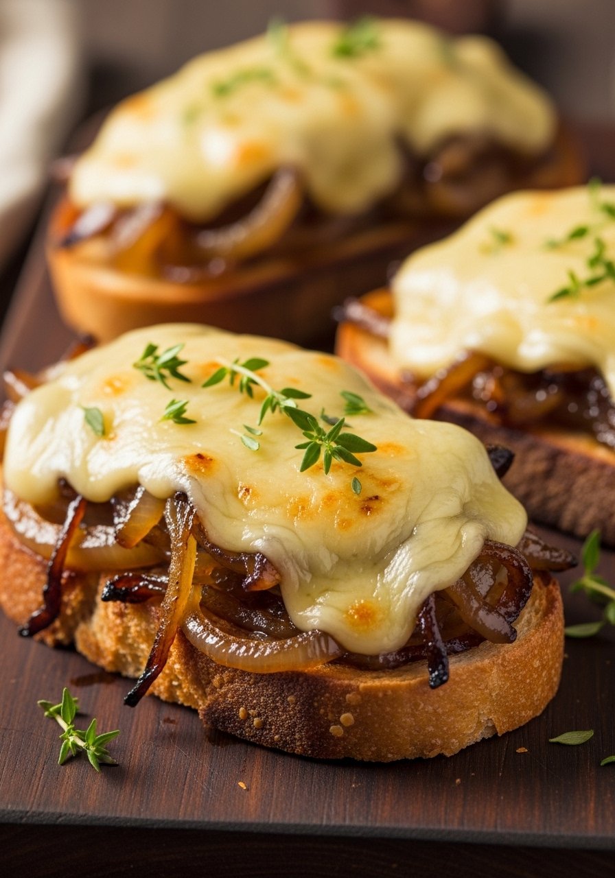 - Place Brie slices on top and broil 1–2 minutes until cheese softens and edges brown slightly. Watch closely.