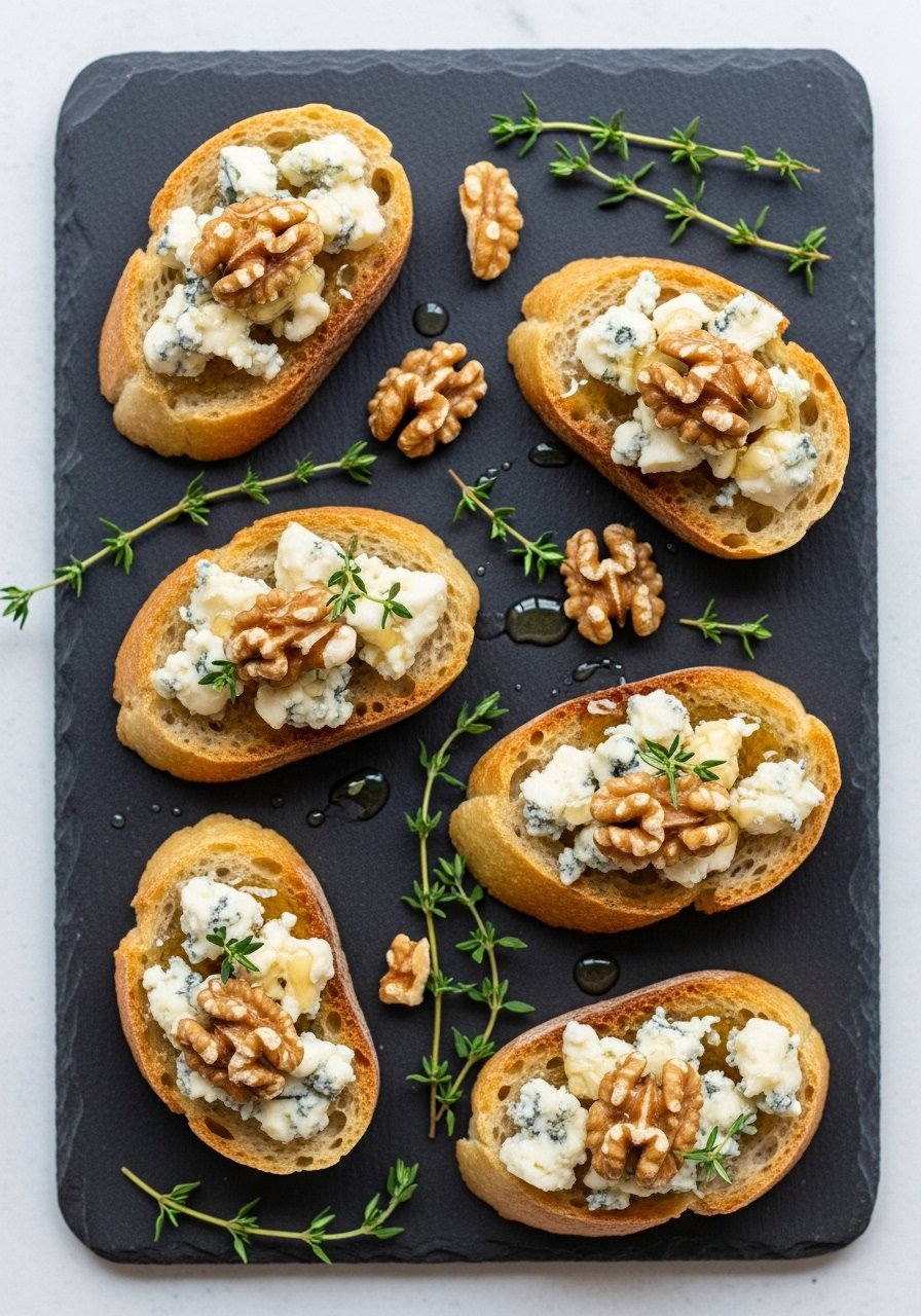16. Blue Cheese & Walnut Cheesy Garlic Crostini