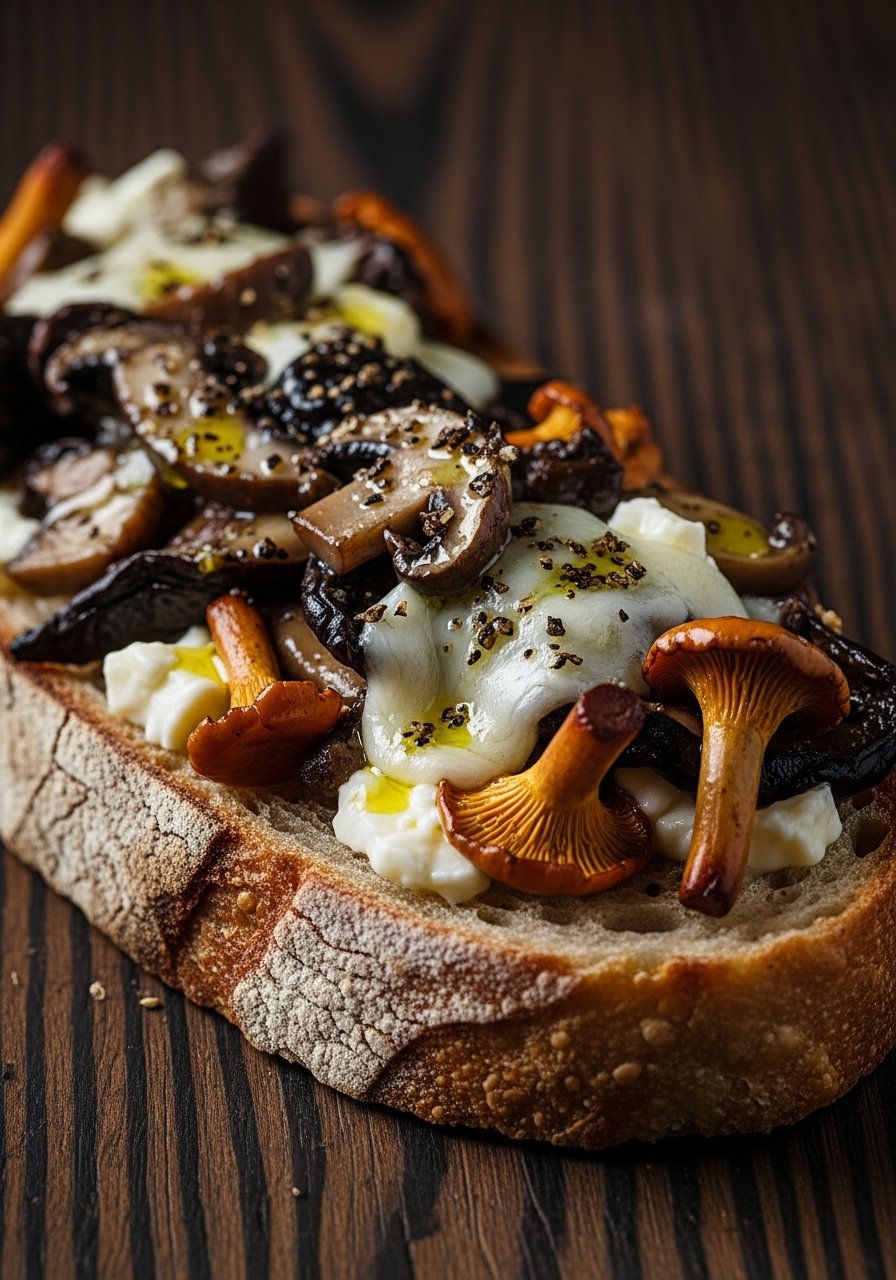 Earthy mushrooms and a drizzle of truffle oil make this a luxurious, savory cheesy garlic bread. The flavor is deep and aromatic—great for date nights.