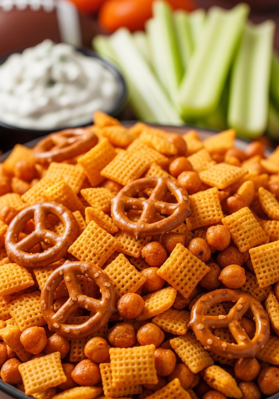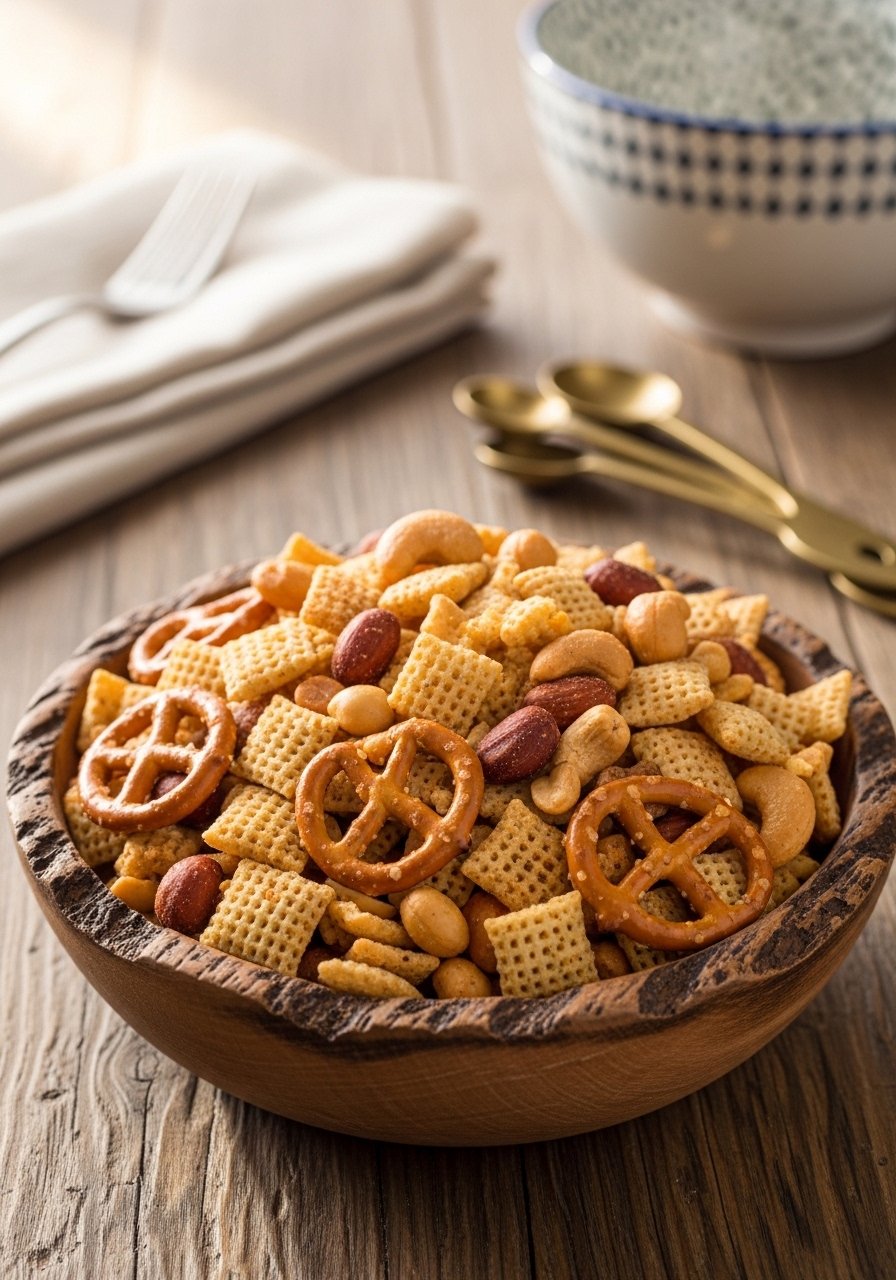 This is the nostalgic, salty-savoury snack everyone recognizes—crispy cereal coated in a buttery, Worcestershire-spiked seasoning. It’s great for parties because it holds up all day. Expect savory, slightly smoky notes and big crunch from the cereal and pretzels. Fans of game-day snacks and potlucks will love this familiar flavor.