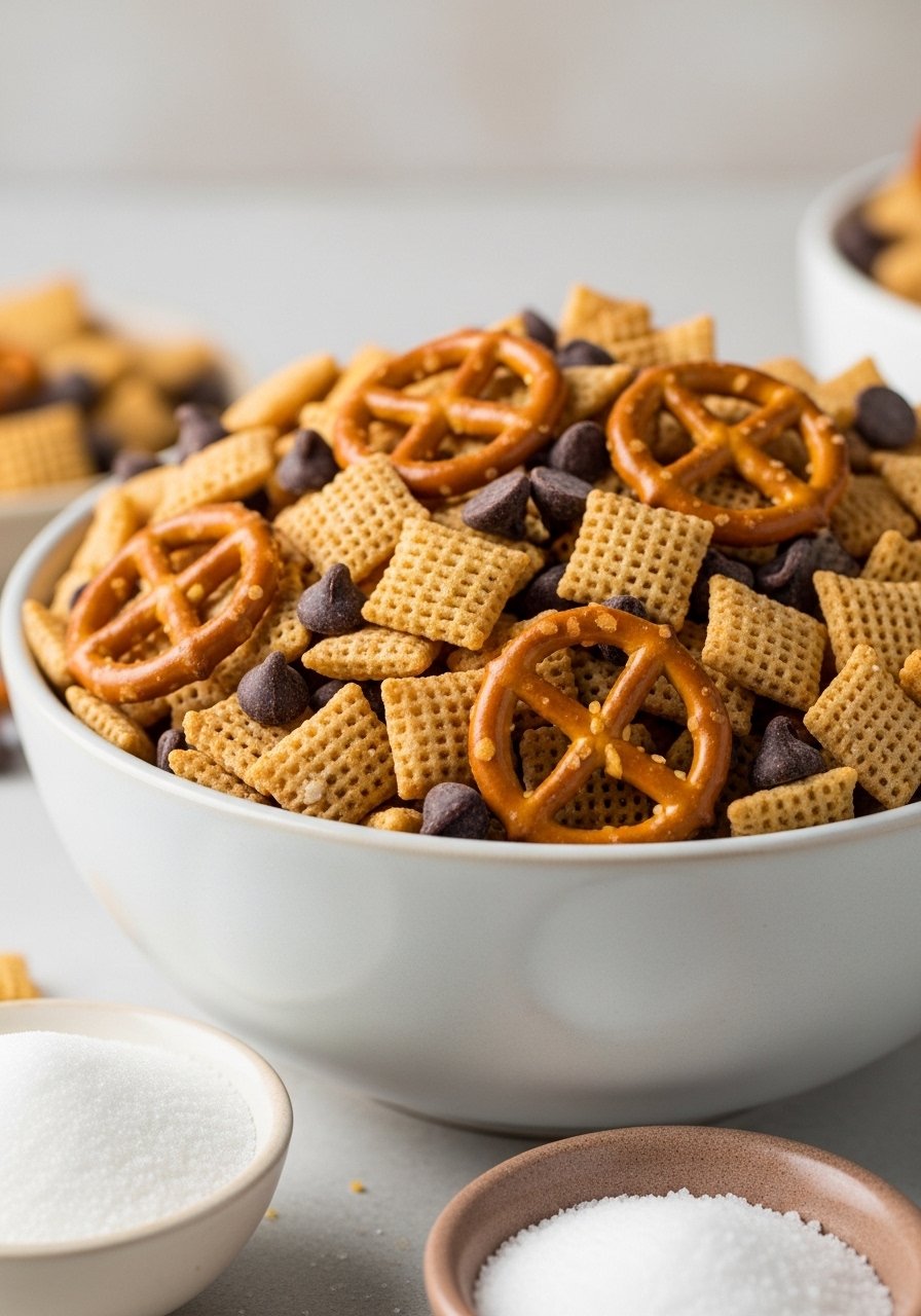 A deliberately gluten-free sweet-and-salty combo using Rice Chex and gluten-free pretzels. It’s balanced and crowd-friendly for mixed-diet events.
