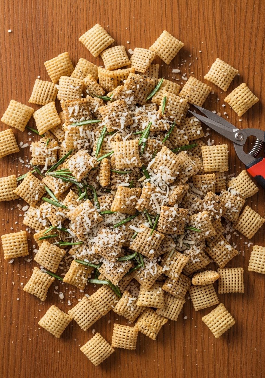 Serve this in a large wooden bowl with small scoops for guests. Garnish with fresh rosemary sprigs for holiday presentation. Store in airtight containers for up to 2 weeks. Makes a great hostess gift when packed into mason jars.