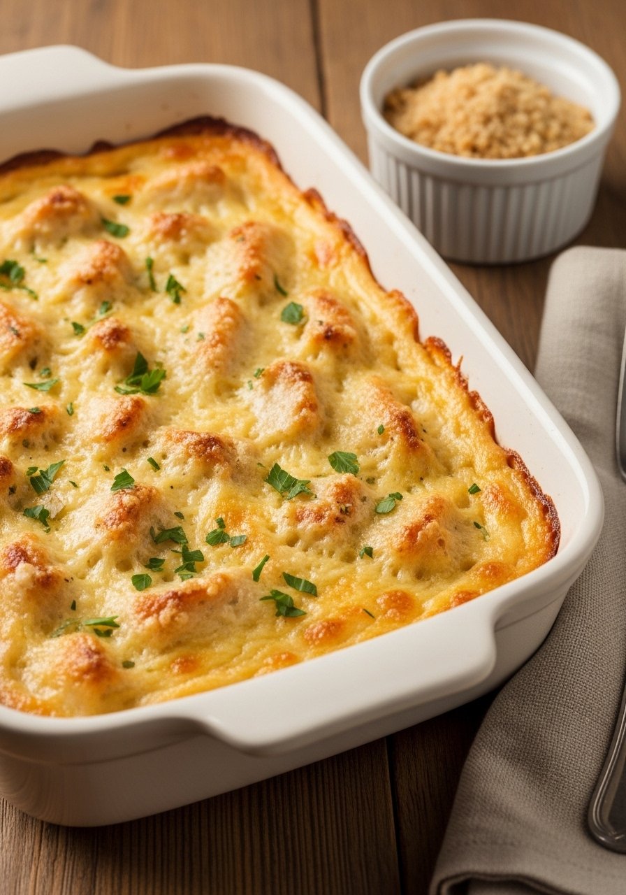 This baked casserole gets a crunchy breadcrumb top and holds up well in the freezer. It’s comfort food that you can portion and heat when needed. The top crisps while the center stays creamy—kids and coworkers both approve.