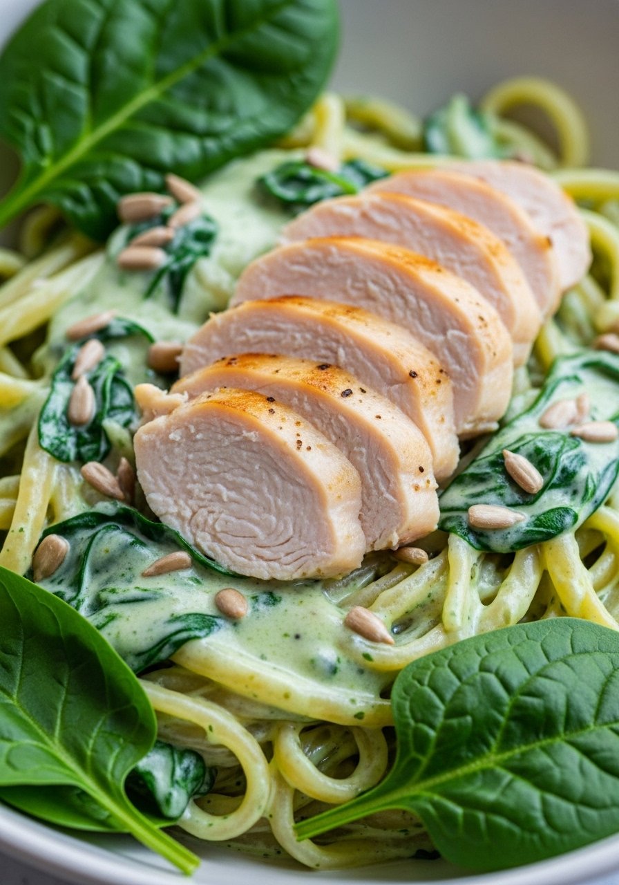 18. Sunflower Seed & Spinach Chicken Alfredo (Dairy-Reduced)