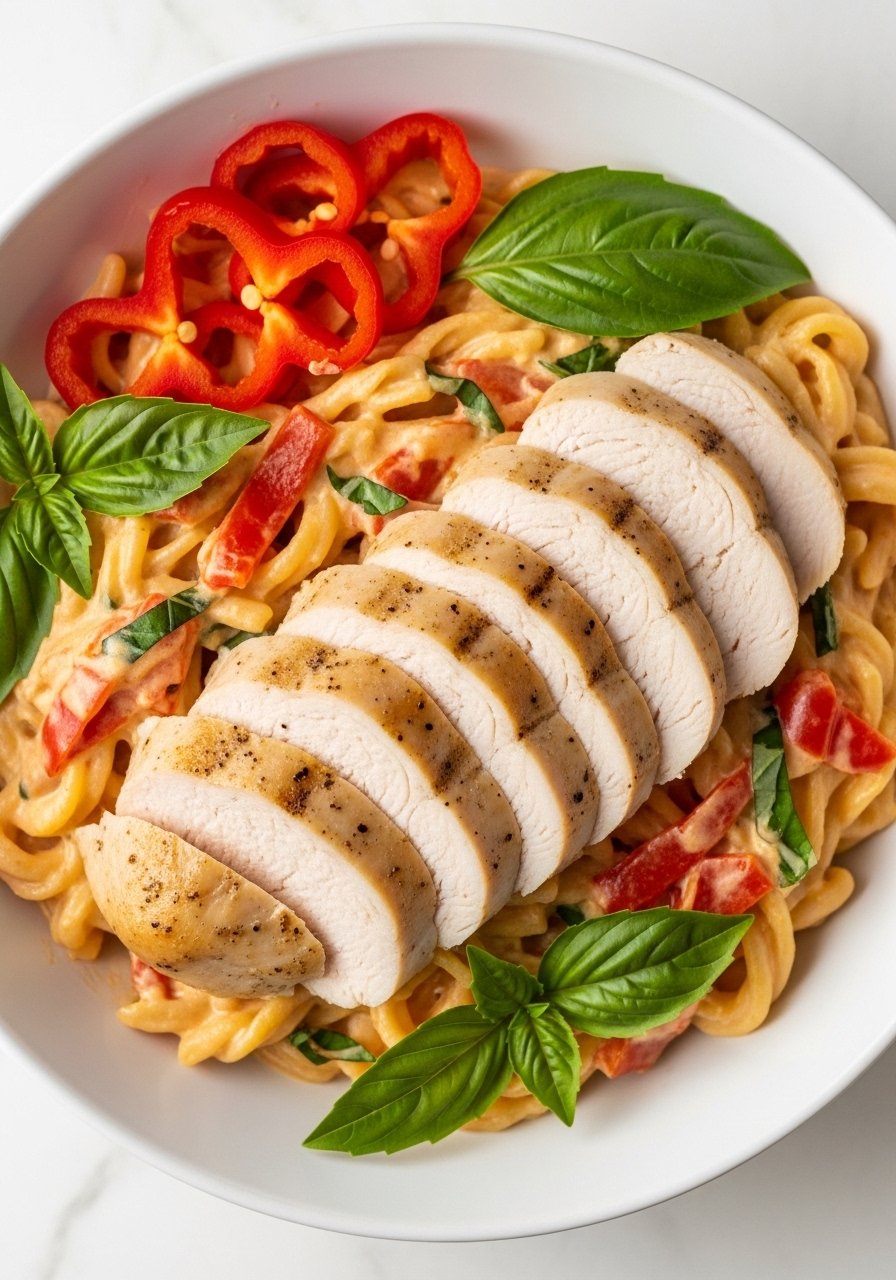 19. Creamy Roasted Red Pepper Chicken Alfredo