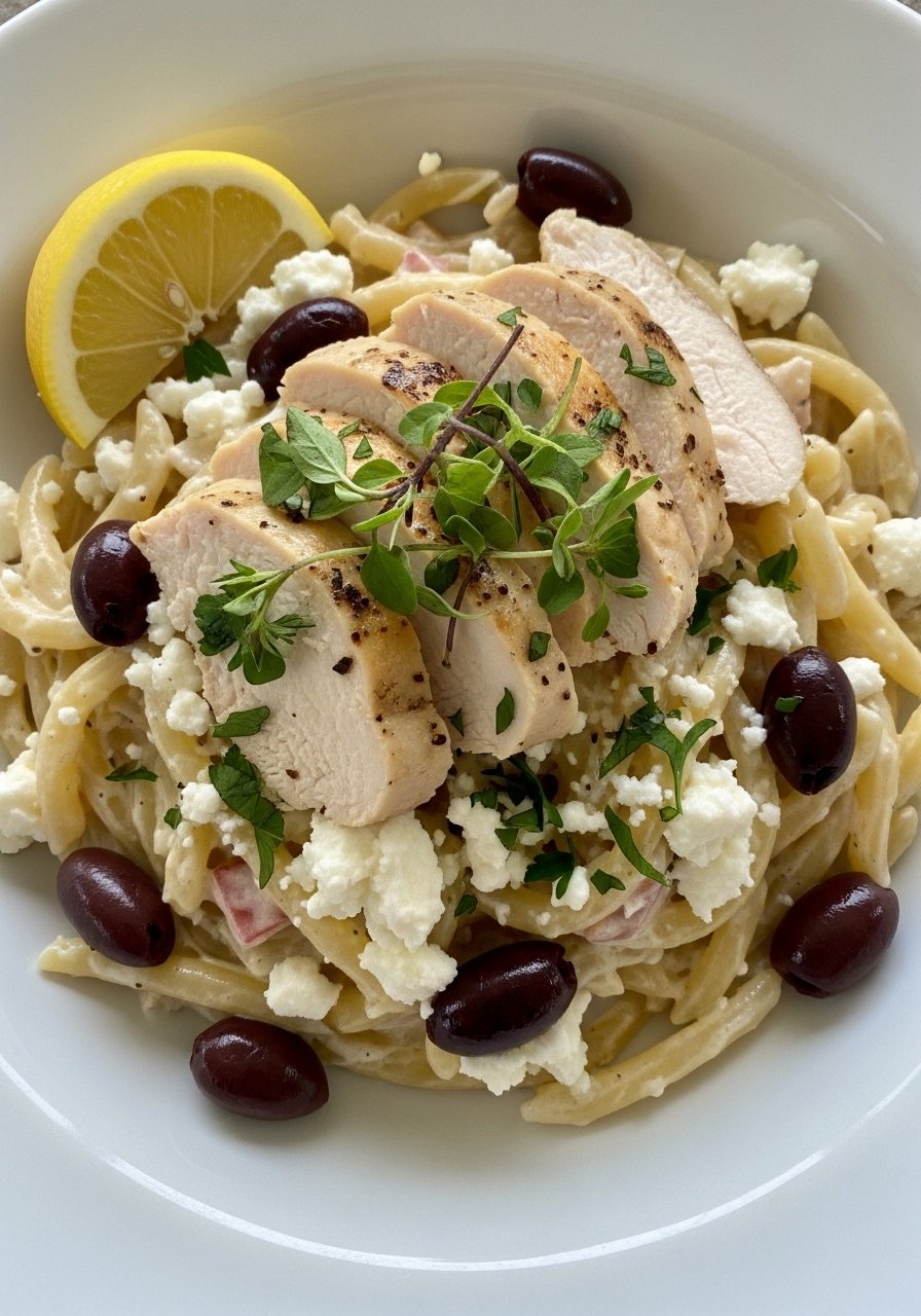 20. Mediterranean Olive & Feta Chicken Alfredo (Meal Prep Favorite)