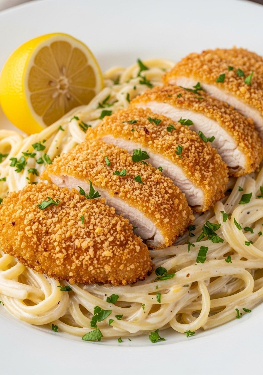Big garlic flavor meets nutty Parmesan in this skillet version that emphasizes the crust on the chicken. The chicken is seared until deeply golden, then finished in a garlicky cream sauce. You’ll love the contrast of crunchy edges and silky pasta.