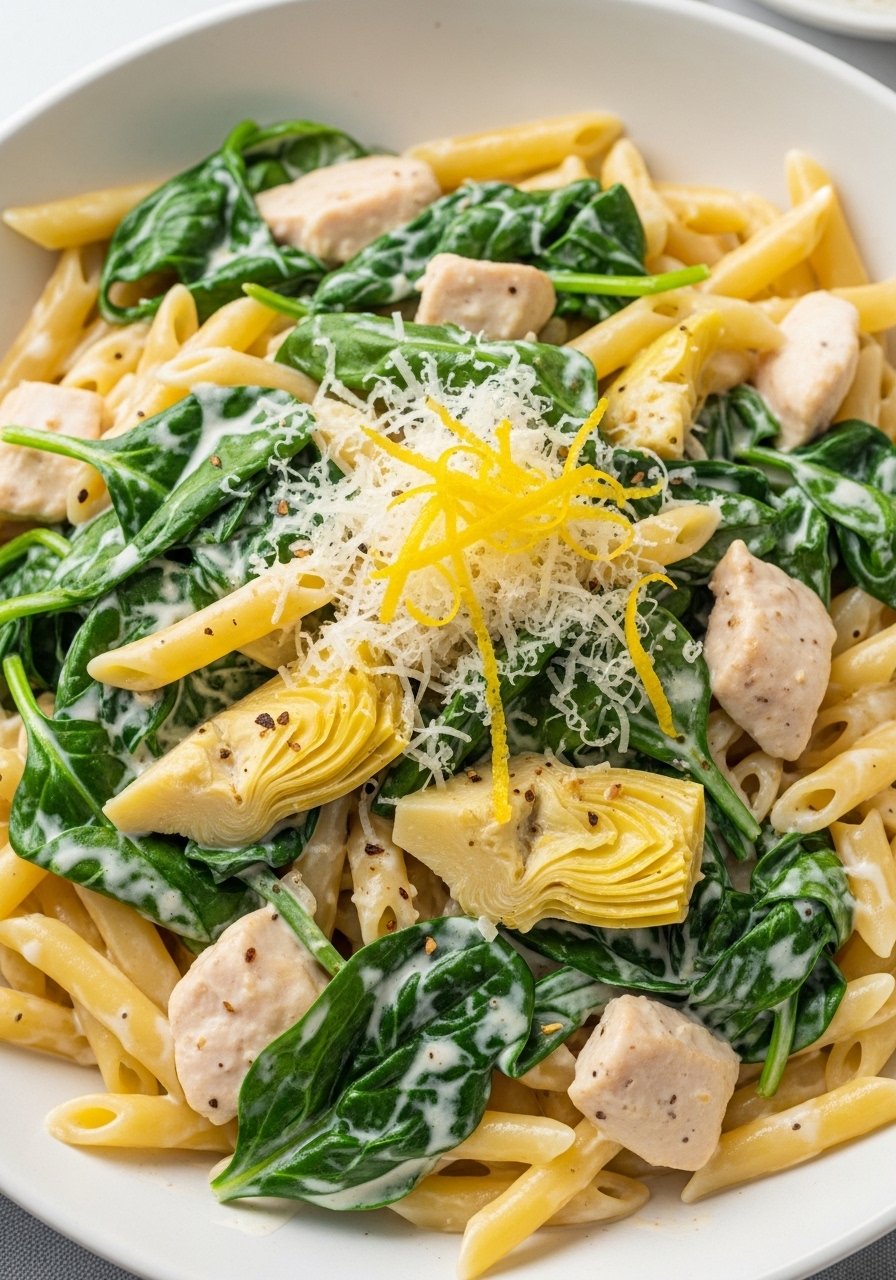 Bright lemon cuts through the richness for a fresher take on Alfredo. Tender spinach folded into the sauce adds color and a subtle vegetal note. This is light enough for spring dinners but still satisfyingly creamy.