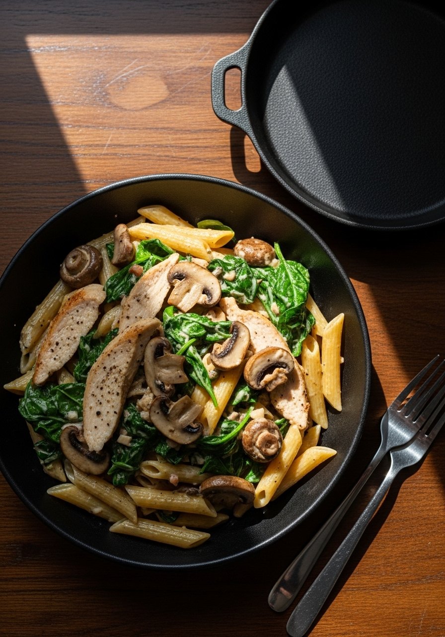 4. Mushroom & Spinach Chicken Alfredo Penne