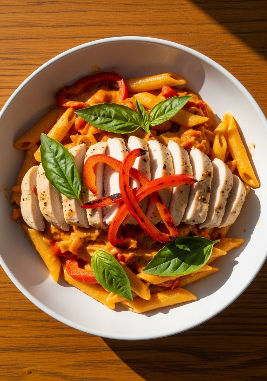 13. Roasted Red Pepper Chicken Alfredo Penne