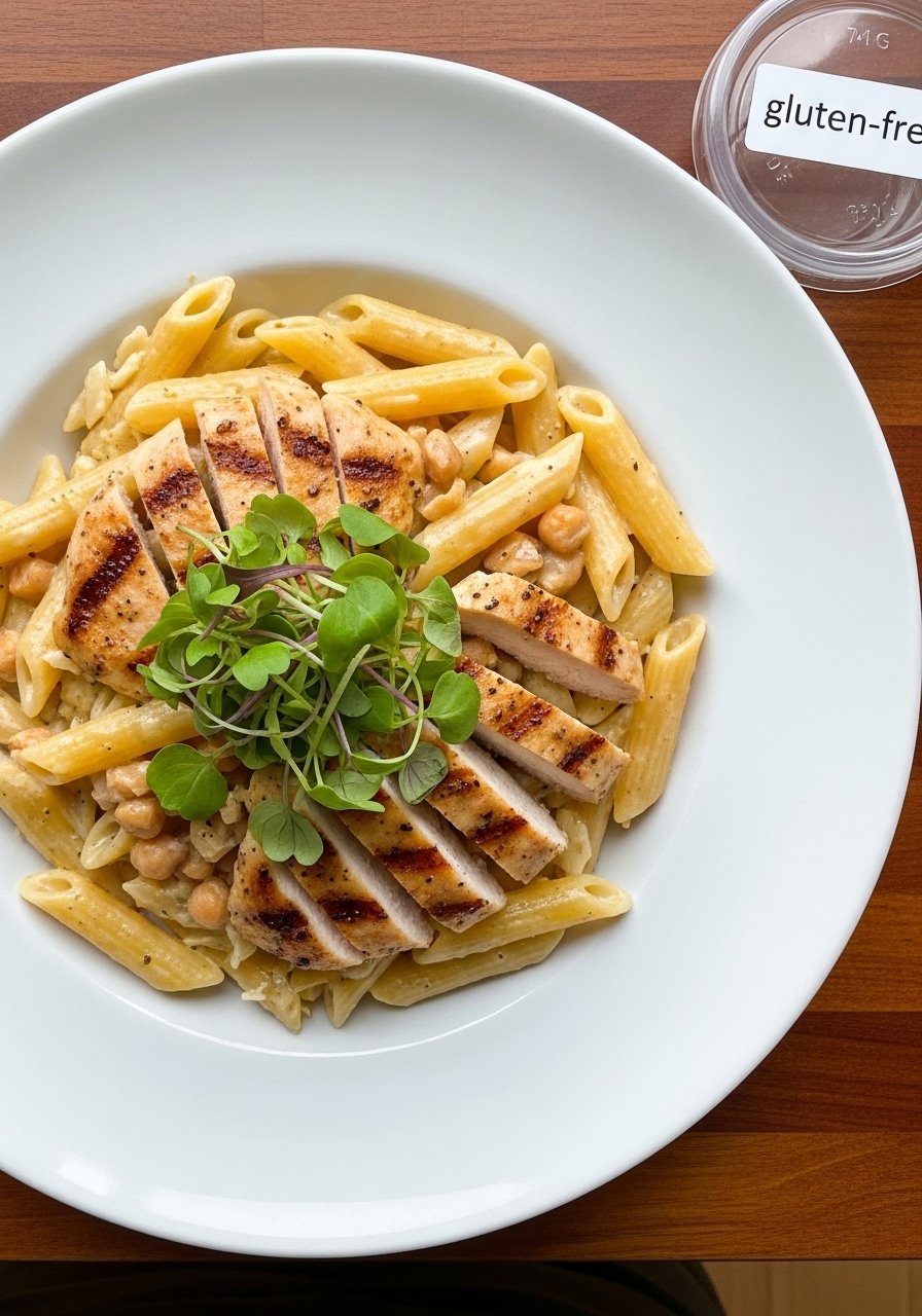 17. Gluten-Free Chicken Alfredo with Penne (Chickpea Pasta)