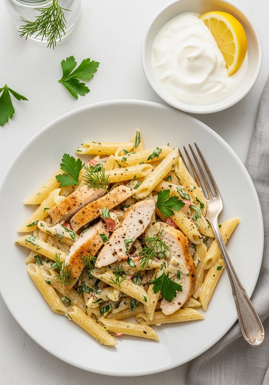 If you want a lighter take, stir Greek yogurt into the sauce for creaminess with fewer calories. The texture is smooth and tangy—this version still satisfies the craving for chicken alfredo with penne but feels a bit brighter.