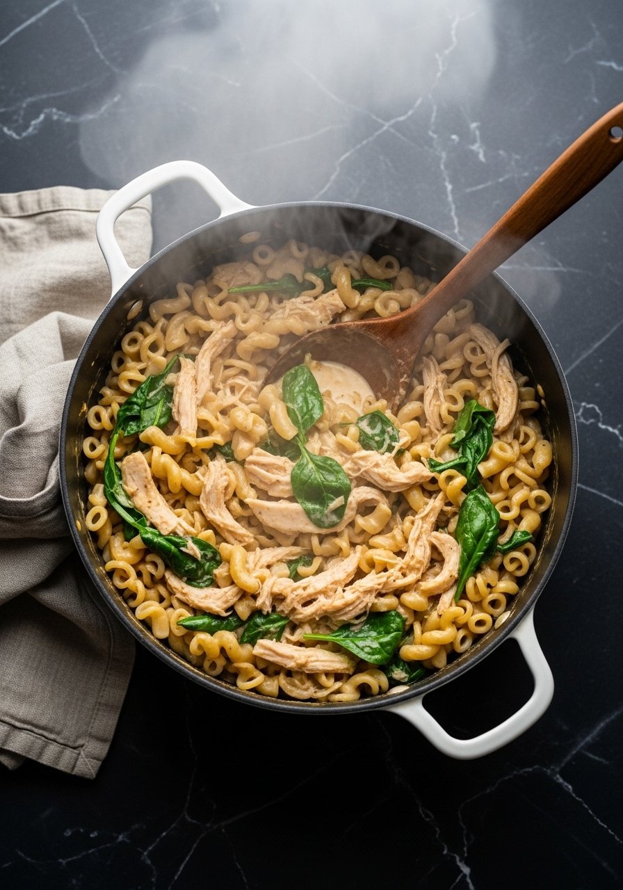 Fewer dishes, same comfort—this one-pot chicken alfredo with spinach cooks pasta right in the sauce so starches thicken it naturally. It's faster and perfect for nights when you want dinner ready with minimal cleanup. The sauce ends up velvety with less fuss.