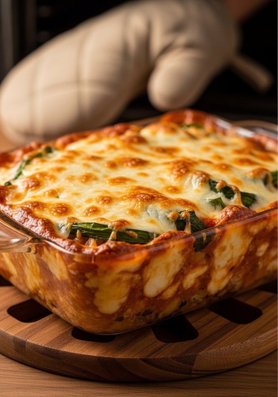 - Bake 20-25 minutes until bubbly and golden. Let rest 5 minutes before serving.