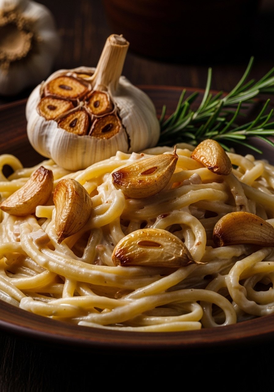 - Sauté garlic in butter 30 seconds, add cream, and simmer 2 minutes.