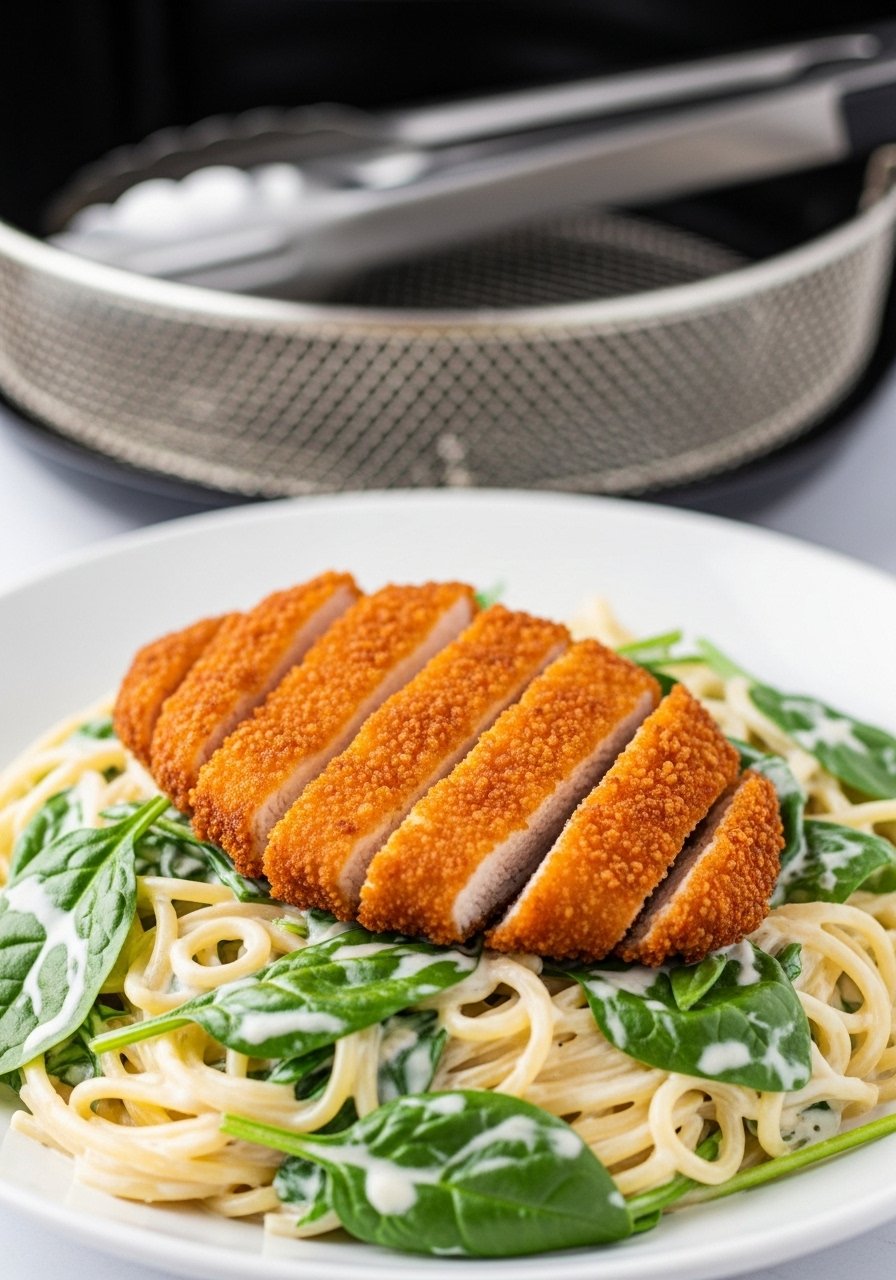 21. Air Fryer Crispy Chicken over Alfredo with Spinach