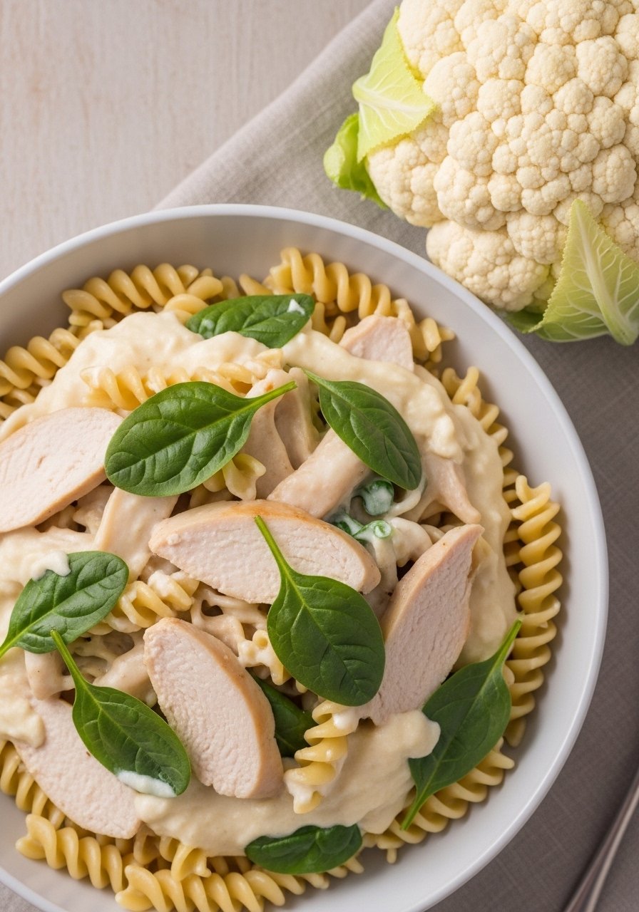 26. Cauliflower Alfredo with Chicken and Spinach (Gluten-Free Option)