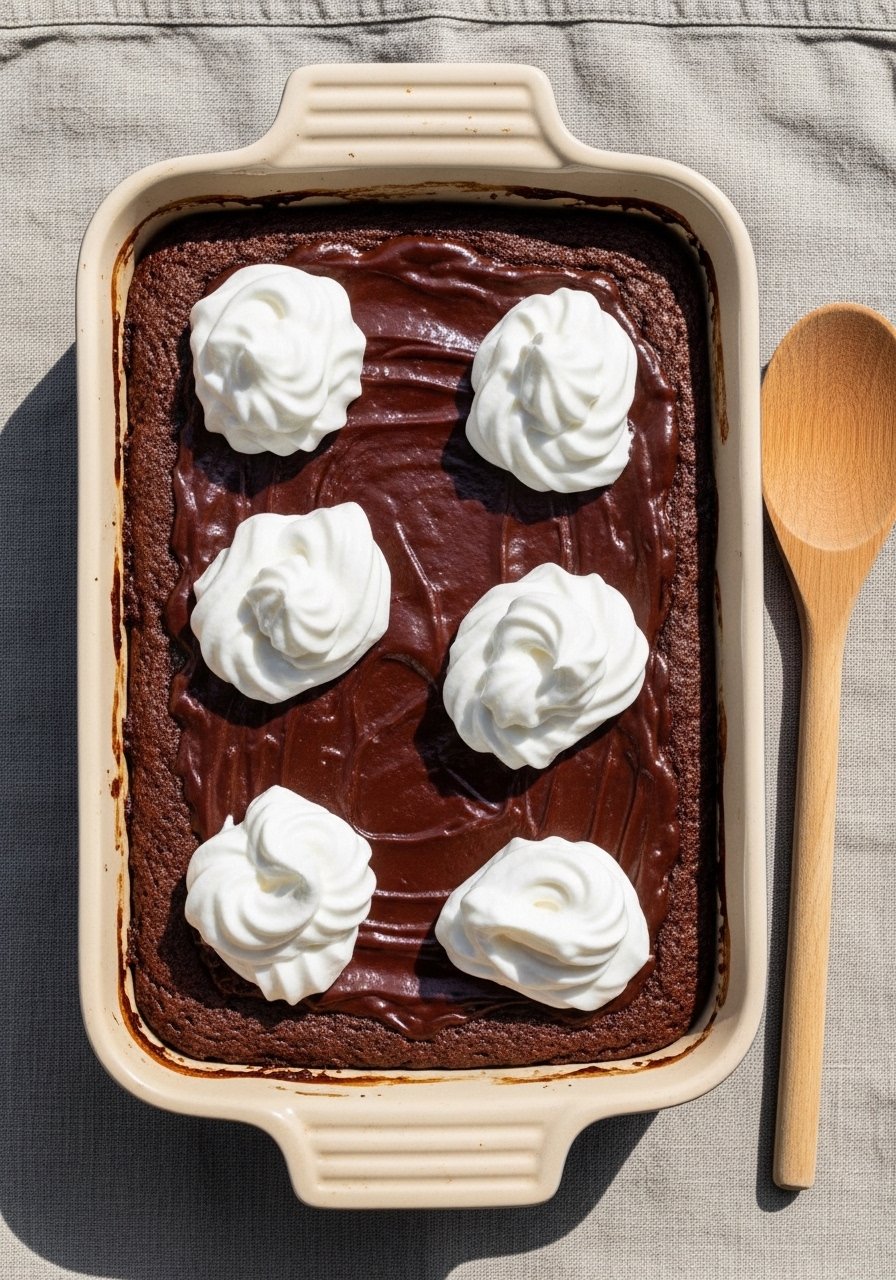 This is the baseline chocolate dump cake: ultra-fudgy inside, crisp around the edges. It tastes like molten brownie meets cobbler. The texture is dense, very chocolatey, and great warm with vanilla ice cream. Home bakers who love brownies but want simpler prep will adore this.