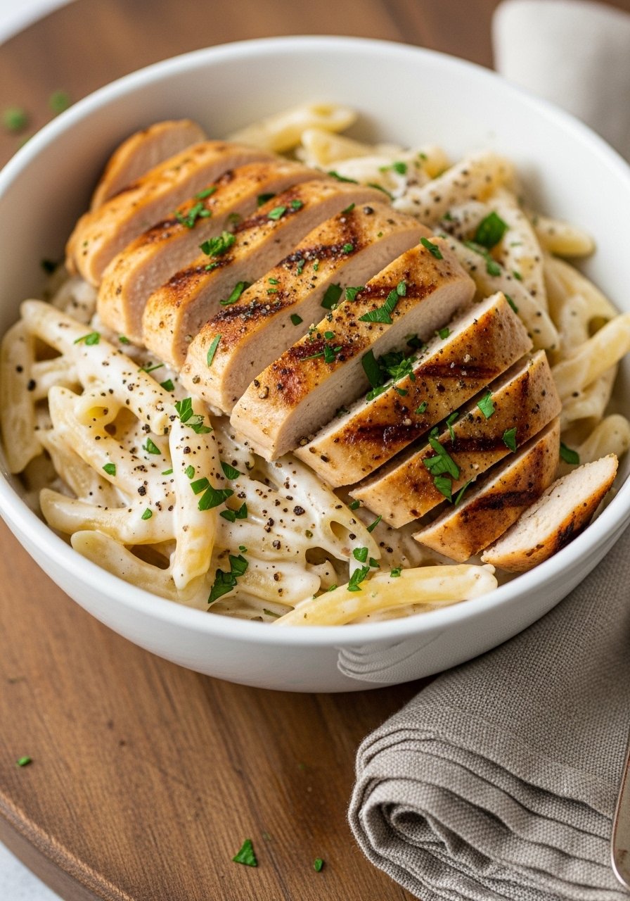 A timeless take on creamy comfort: tender shredded chicken bathed in a garlicky Parmesan cream. This version keeps flavors simple—great for picky eaters and weeknight dinners. It tastes rich, buttery, and herb-fresh; the sauce is velvety and clings to fettuccine beautifully. If you like a classic, this is the one you'll make again and again.