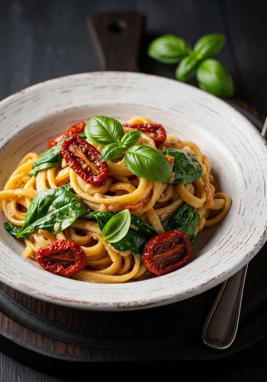 Sun-dried tomatoes and basil add a Mediterranean twist—sweet, tangy tomatoes and bright herbs cut through the richness. This one smells amazing and feels elevated while still being hands-off.