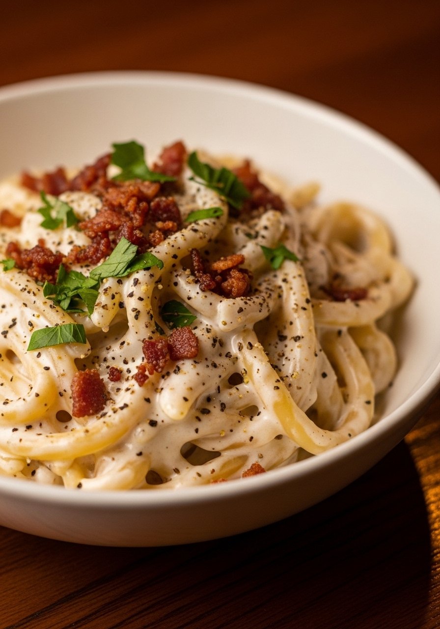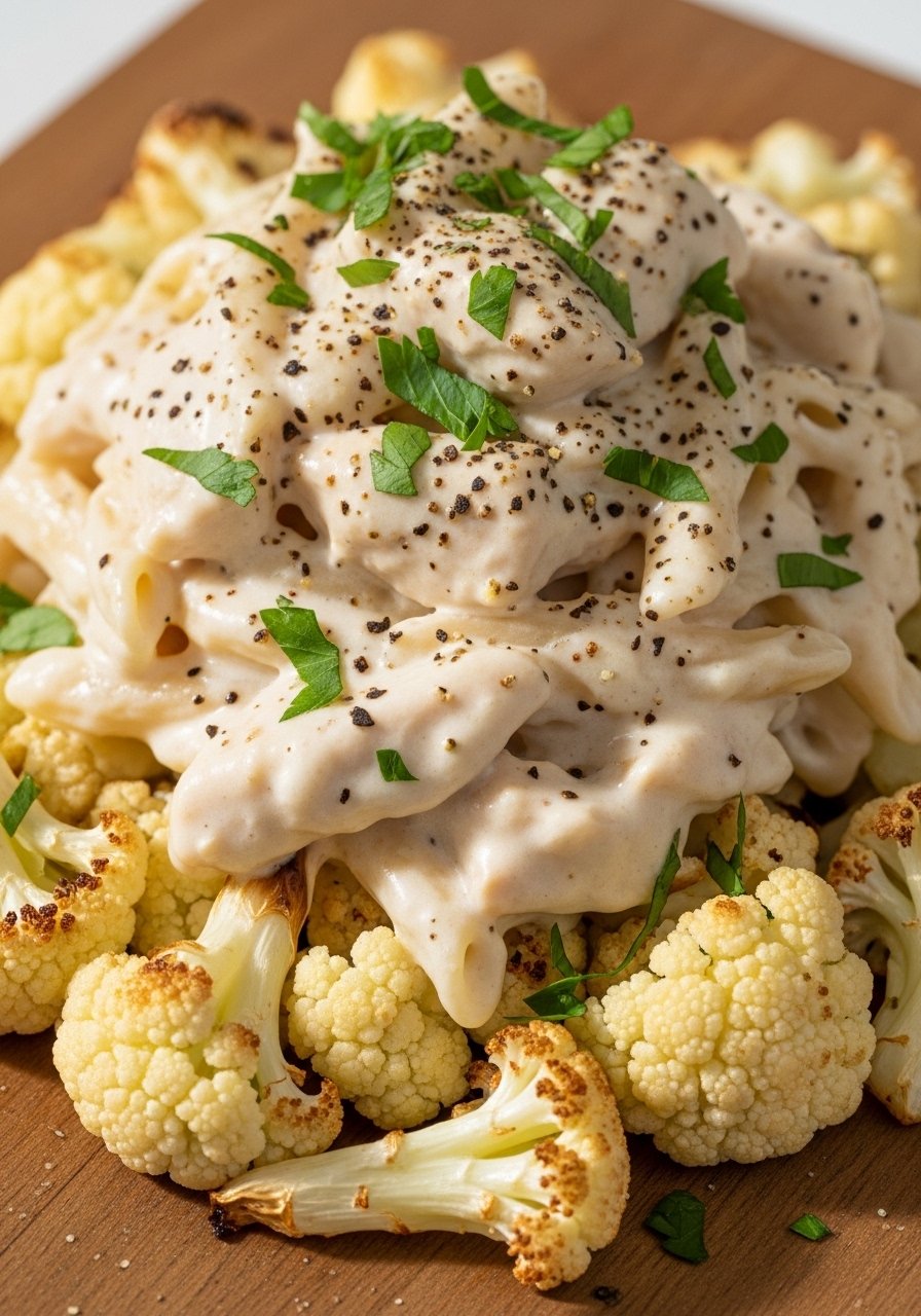 A low-carb take that keeps the creamy comfort while swapping pasta for roasted cauliflower. The sauce is rich, and cauliflower soaks up the flavors beautifully.