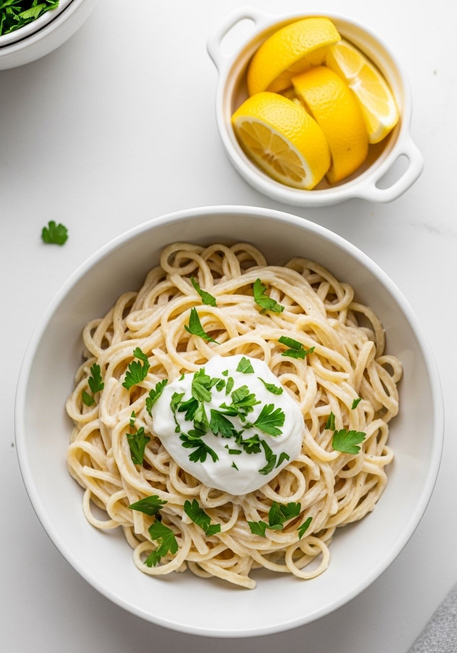 Bright garlic and butter lift this version; fresh spinach adds color and a little green goodness. The sauce is lemon-light and savory, and the wilted spinach gives a gentle earthiness. Perfect for anyone who wants a touch of veggies without extra fuss.
