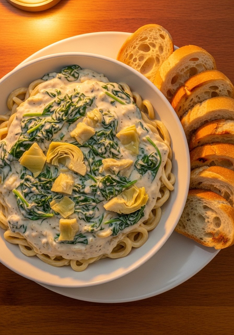 18. Spinach Artichoke Crockpot Chicken Alfredo (Dip-Inspired)