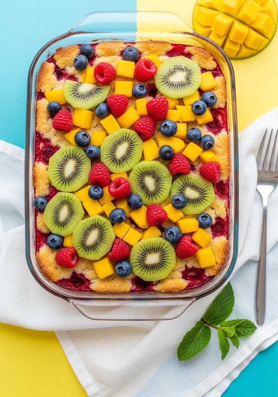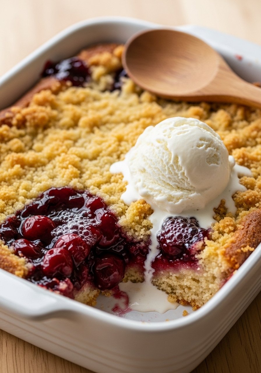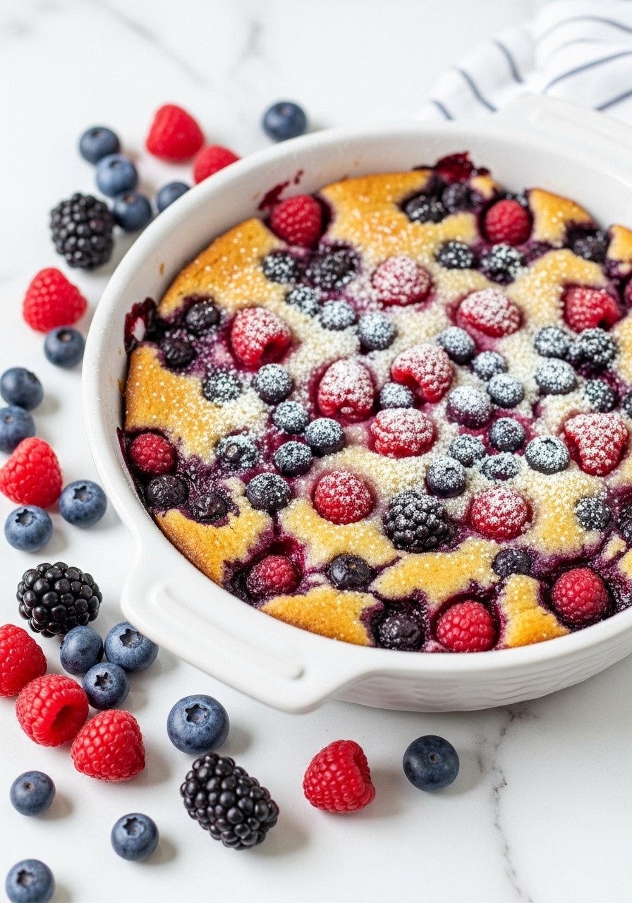 A vibrant combo of berries gives a lovely balance of tart and sweet. The white cake mix keeps the top light while the berries create a jammy base. This is a great recipe for potlucks and summer gatherings.