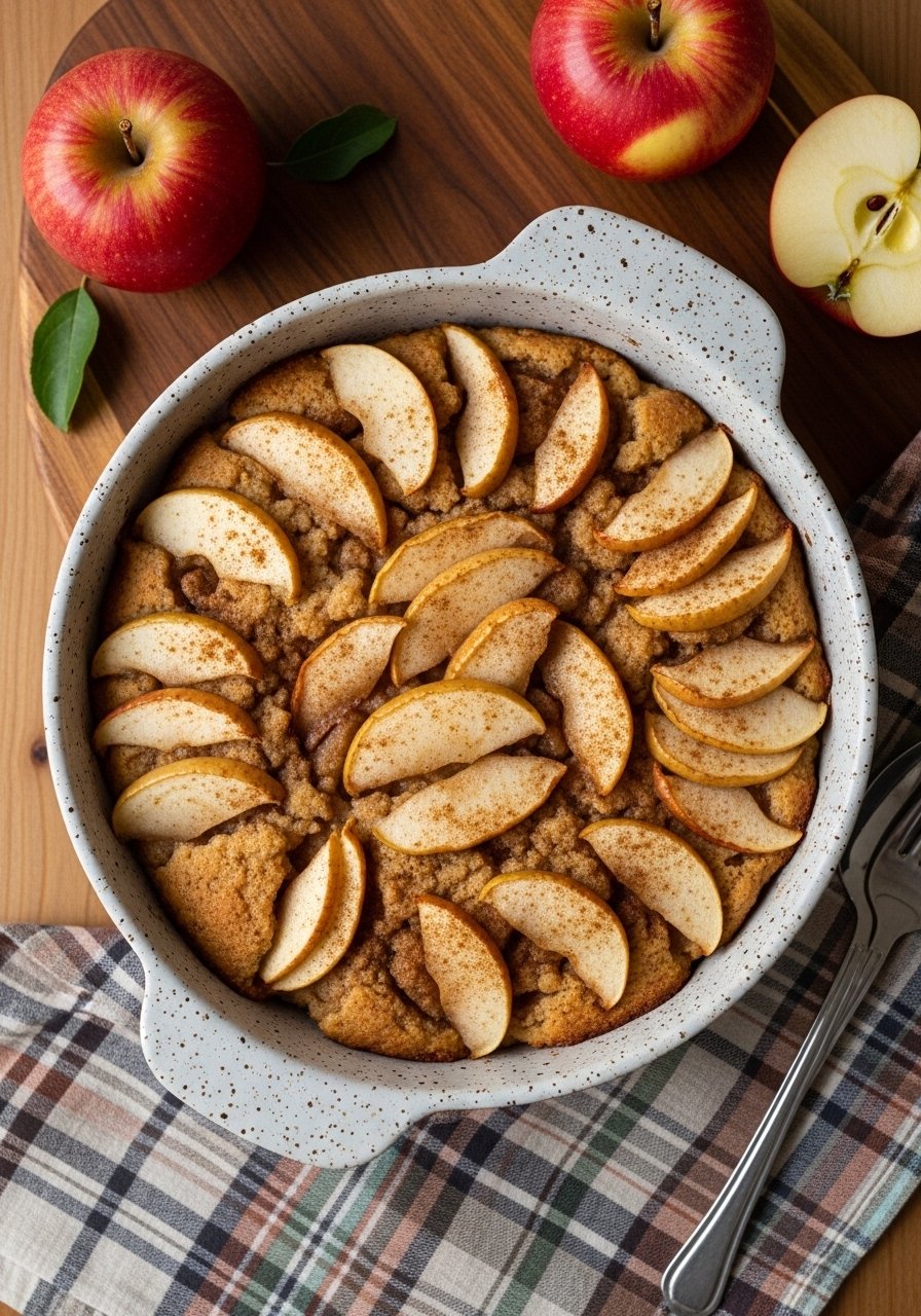 This cozy apple cinnamon version tastes like a cross between apple pie and coffee cake. Tart apples, brown sugar, and warm spices soak under a crunchy spice cake topping, giving a soft interior and crisp edges. It’s perfect for fall breakfasts or dessert after a family dinner.