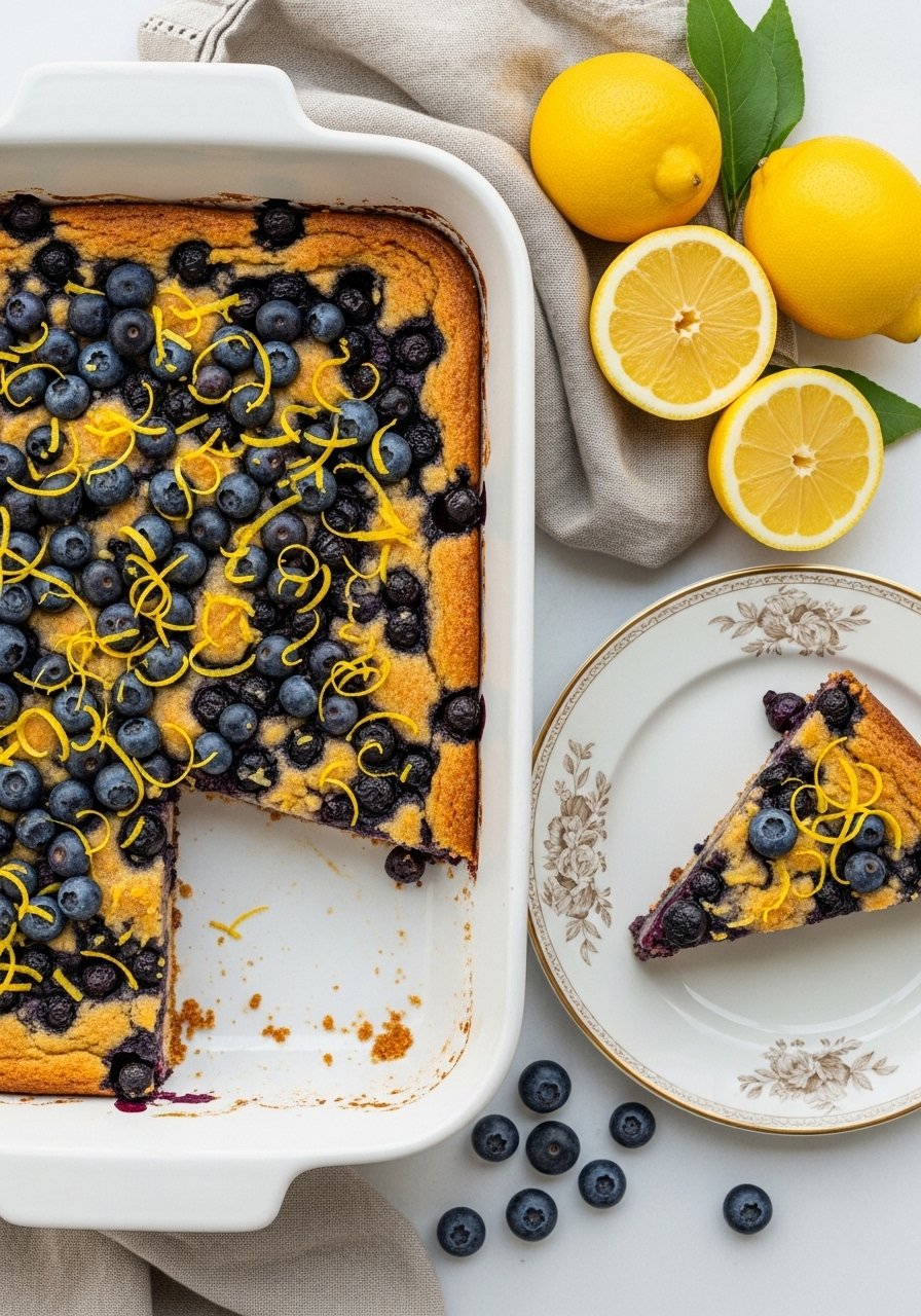 Zingy lemon balances juicy blueberries in this fresh-tasting dump cake. The white cake mix creates a tender, cakey top while the fruit beneath stays saucy and vibrant. Ideal for brunch or a summer barbecue.