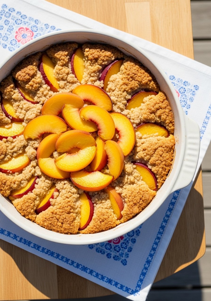 - Bake 30–35 minutes, until top is golden and fruit is bubbling.