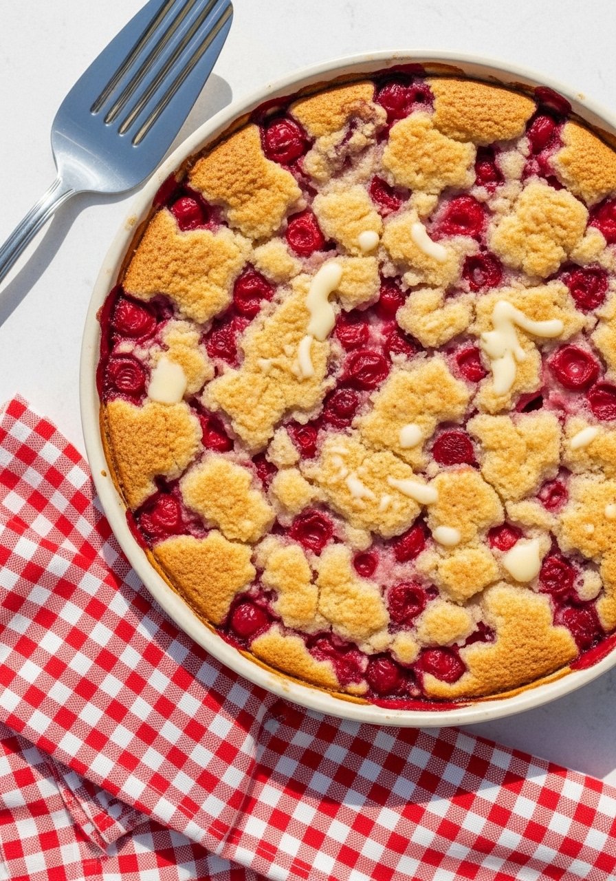 A timeless potluck favorite: bright cherry pie filling under a crispy, buttery yellow cake crust. Sweet-tart cherries contrast with a tender crumb for a nostalgic dessert everyone will smile at. If you love fruit-forward sweets with crunchy edges, this one’s for you.