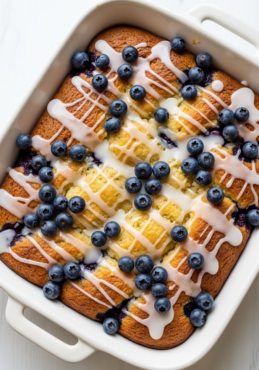 A bright twist on the classic blueberry cake: lemony glaze and fresh berries make this one zingy and irresistible. Great for brunch or springtime celebrations.
