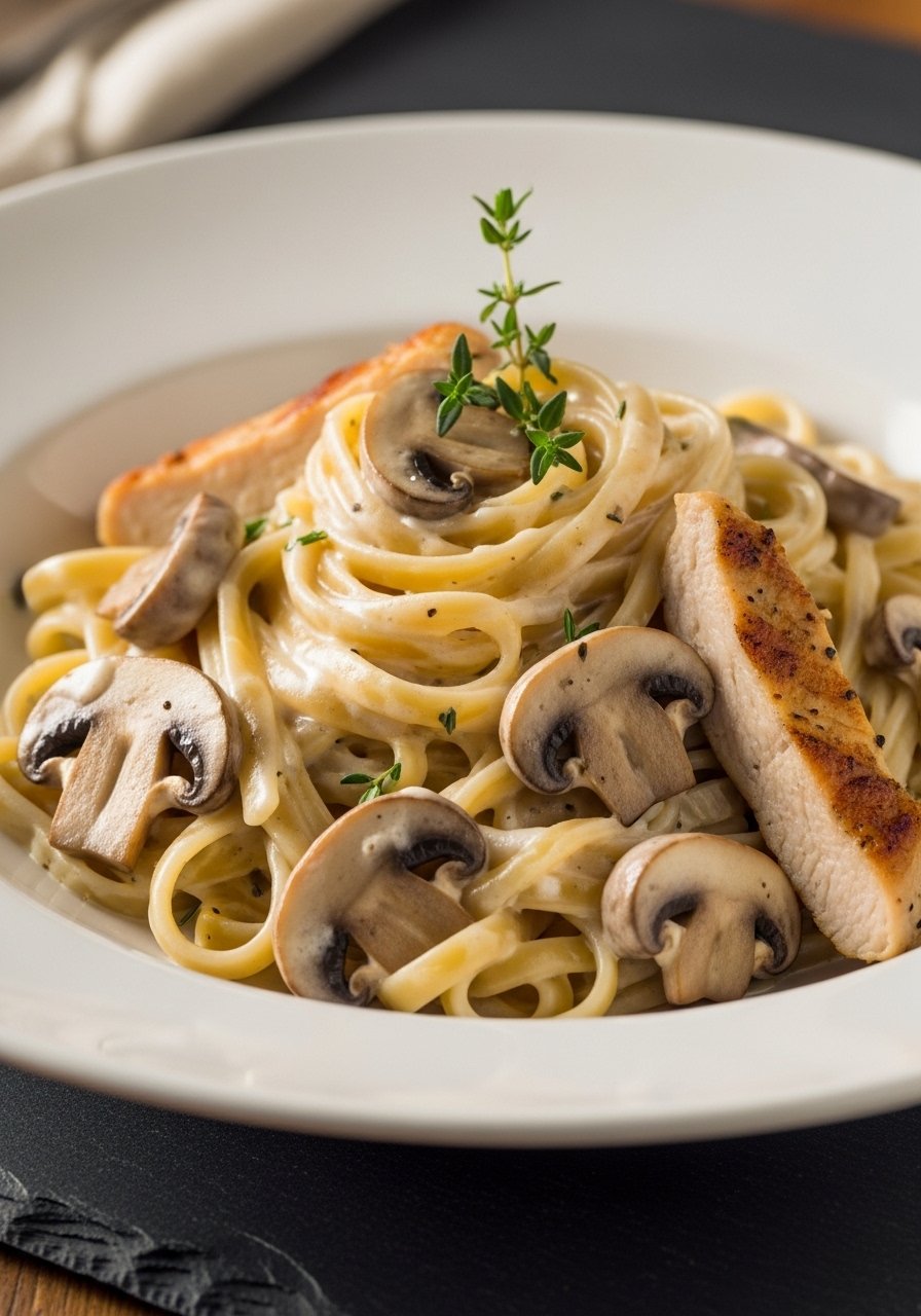 4. Mushroom & Thyme Easy Chicken Alfredo Recipe