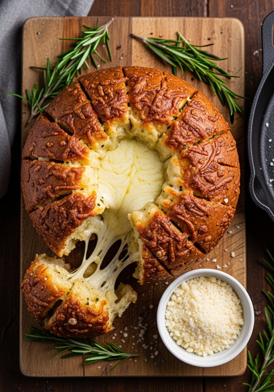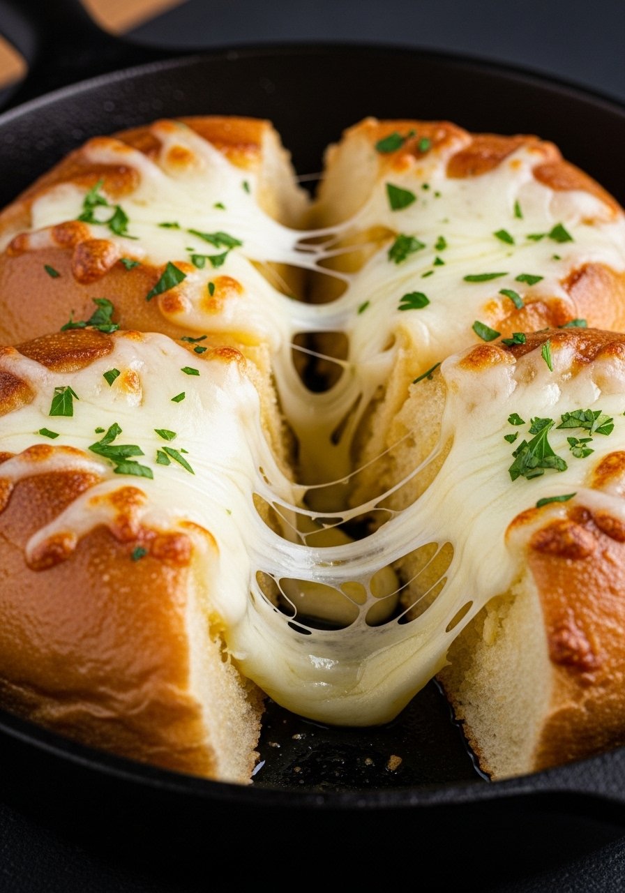 A party favorite that’s showy but fast. Cubes of bread hold pockets of garlic butter and shredded cheeses that melt together into ooey-gooey strips. It’s savory, stretchy, and comforting—great for sharing.