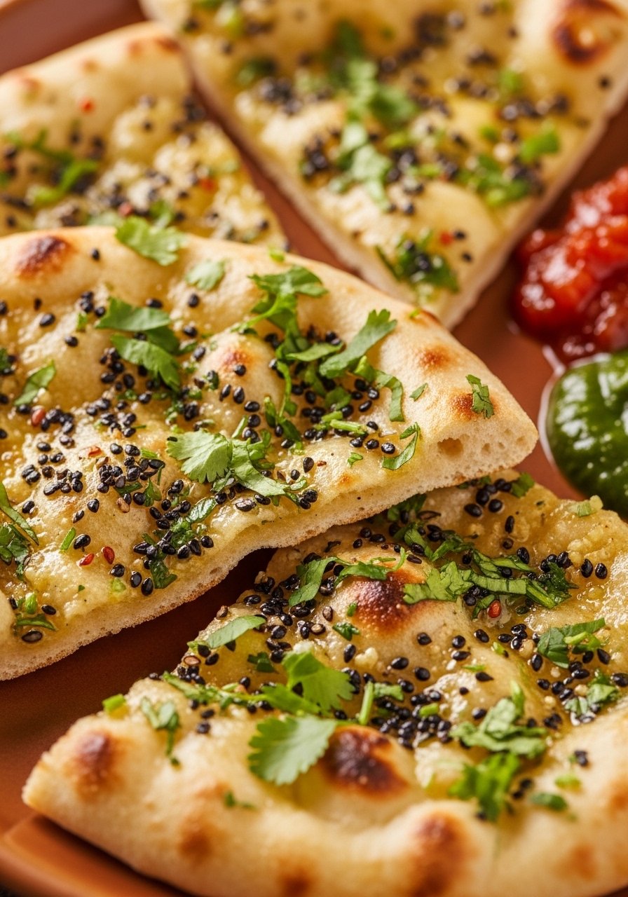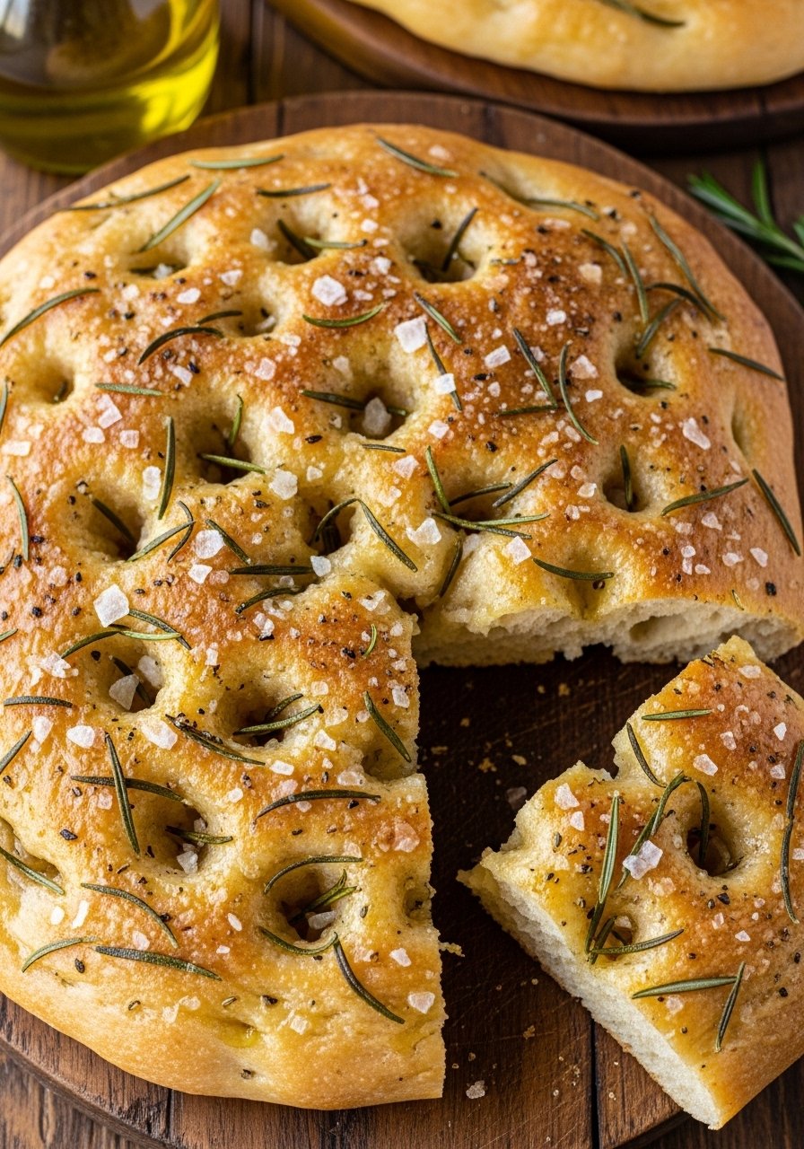 Make quick slices from store-bought focaccia or thin homemade pieces—garlic oil soaks into the airy crumb and gives a soft, herbaceous bite. Great for sandwiches or with antipasto.