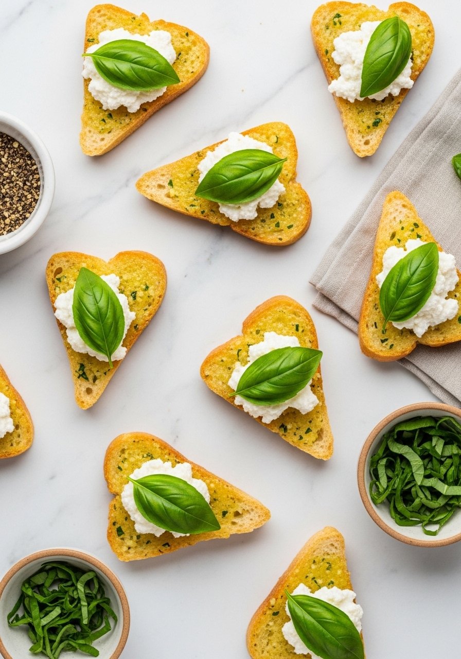 Whipped feta gets a garlicky lift for a tangy, creamy crostini that’s elegant but quick to make. The texture is dreamy and spreads easily.