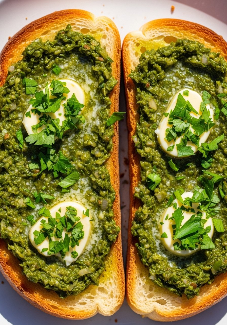 Chimichurri’s herb-forward punch pairs with garlic for a vibrant South American-inspired toast—bright, tangy, and herbaceous.