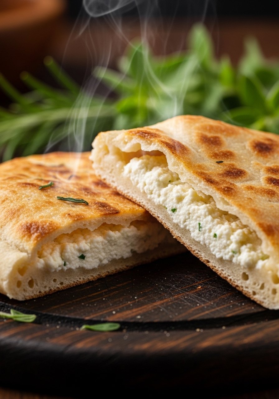 A quick fold-and-toast method yields cheesy, garlicky flatbreads that are soft inside and lightly crisp outside—great for quick lunches.