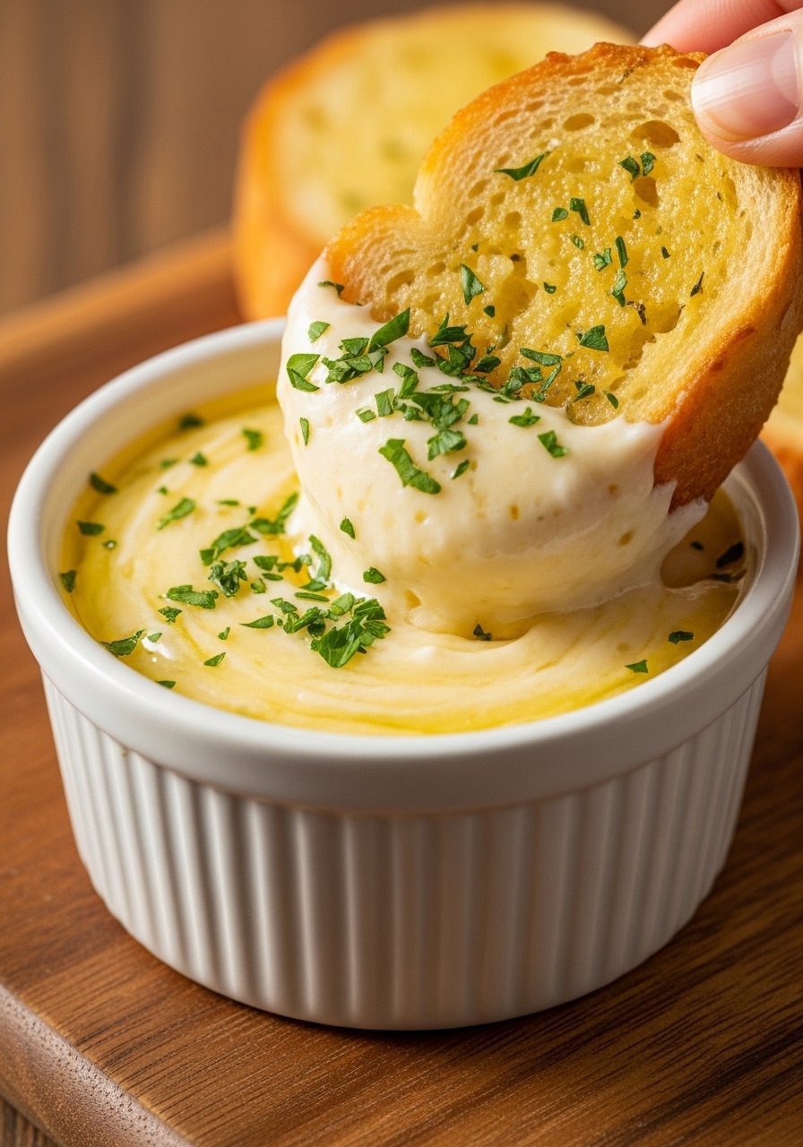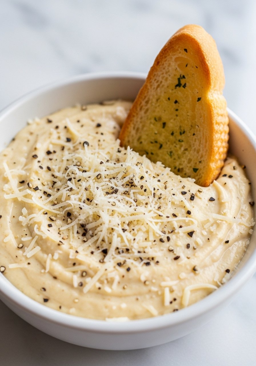 This is a cheesy, savory dip with nutty Parmesan and a hit of garlic—luxurious but simple. Texture is thick and dippable, perfect for pulling strings with hot bread. Ideal for parties and anyone who loves a cheese-forward sauce.