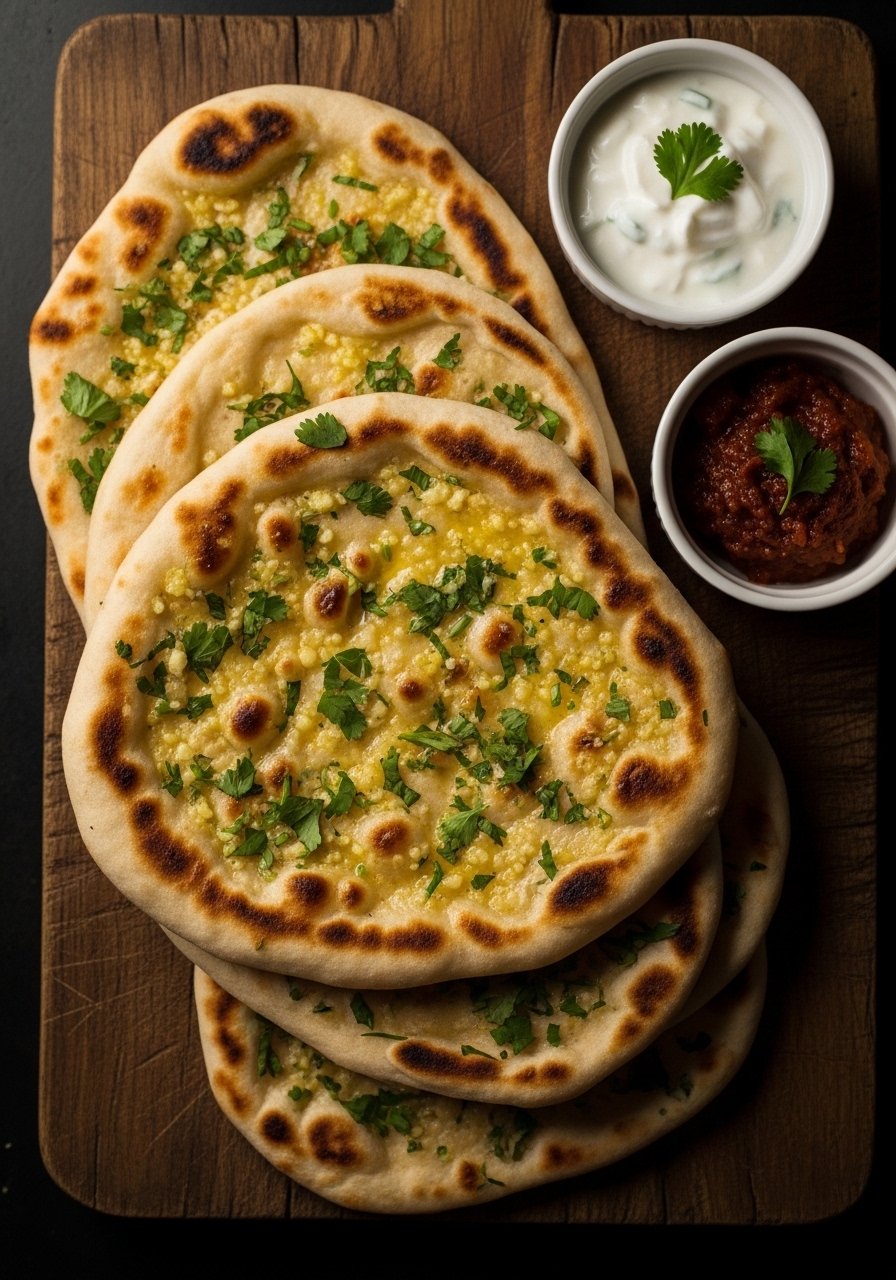 Middle Eastern flavors make this garlic flatbread fragrant and herbaceous. Use a rolling pin to roll thin discs.
