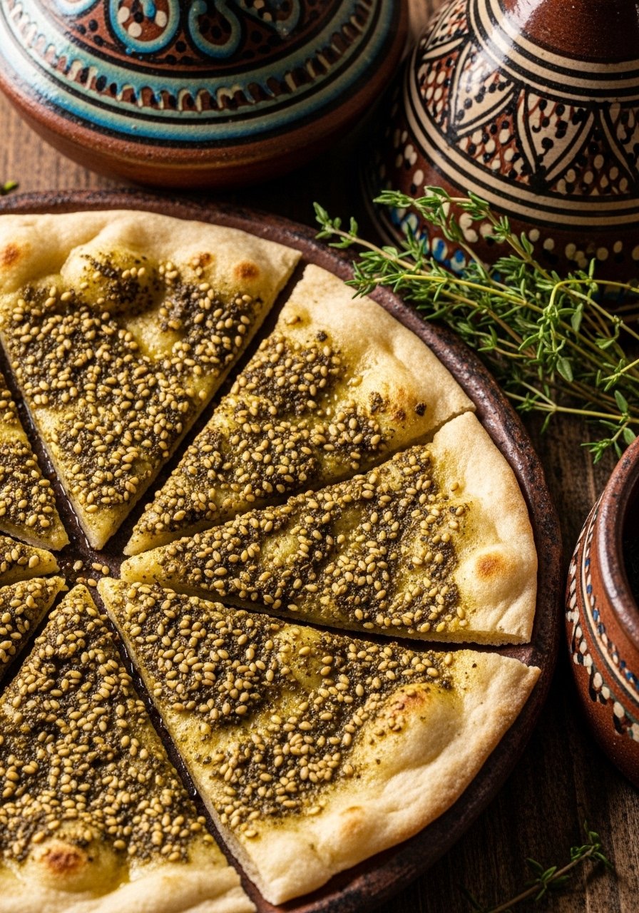- Brush with olive oil mixed with garlic; sprinkle za’atar.